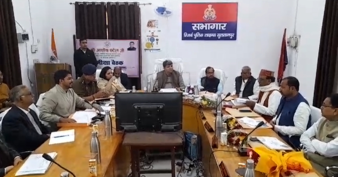 सुल्तानपुर। प्राविधिक शिक्षा, उपभोक्ता मामले उप्र/जनपद प्रभारी मंत्री की अध्यक्षता में पुलिस लाइन सभागार में जनप्रतिनिधियों- विधान परिषद सदस्य शैलेन्द्र प्रताप सिंह, जिलाध्यक्ष भाजपा डॉ आर ए वर्मा, अपना दल जिलाध्यक्ष अविनाश पटेल,विधायक लम्भुआ सीताराम वर्मा, निषाद पार्टी जिलाध्यक्ष, अध्यक्ष नगर पालिका परिषद प्रवीन कुमार अग्रवाल सहित जनपद स्तरीय अधिकारी गण उपस्थित रहे। जिलाधिकारी कृत्तिका ज्योत्स्ना, पुलिस अधीक्षक सोमेन बर्मा व मुख्य विकास अधिकारी अंकुर कौशिक द्वारा मंत्री का मोमेन्टो भेंट कर स्वागत किया गया। जिलाधिकारी कृत्तिका ज्योत्स्ना, पुलिस अधीक्षक सोमेन बर्मा व मुख्य विकास अधिकारी अंकुर कौशिक द्वारा बैठक के पूर्व मंत्री का पुष्प गुच्छ देकर स्वागत किया गया। तत्पश्चात मंत्री द्वारा गार्ड आफ आनर लिया गया। इसके बाद मंत्री की अनुमति से मुख्य विकास अधिकारी महोदय द्वारा समीक्षा बैठक प्रारम्भ की गयी।