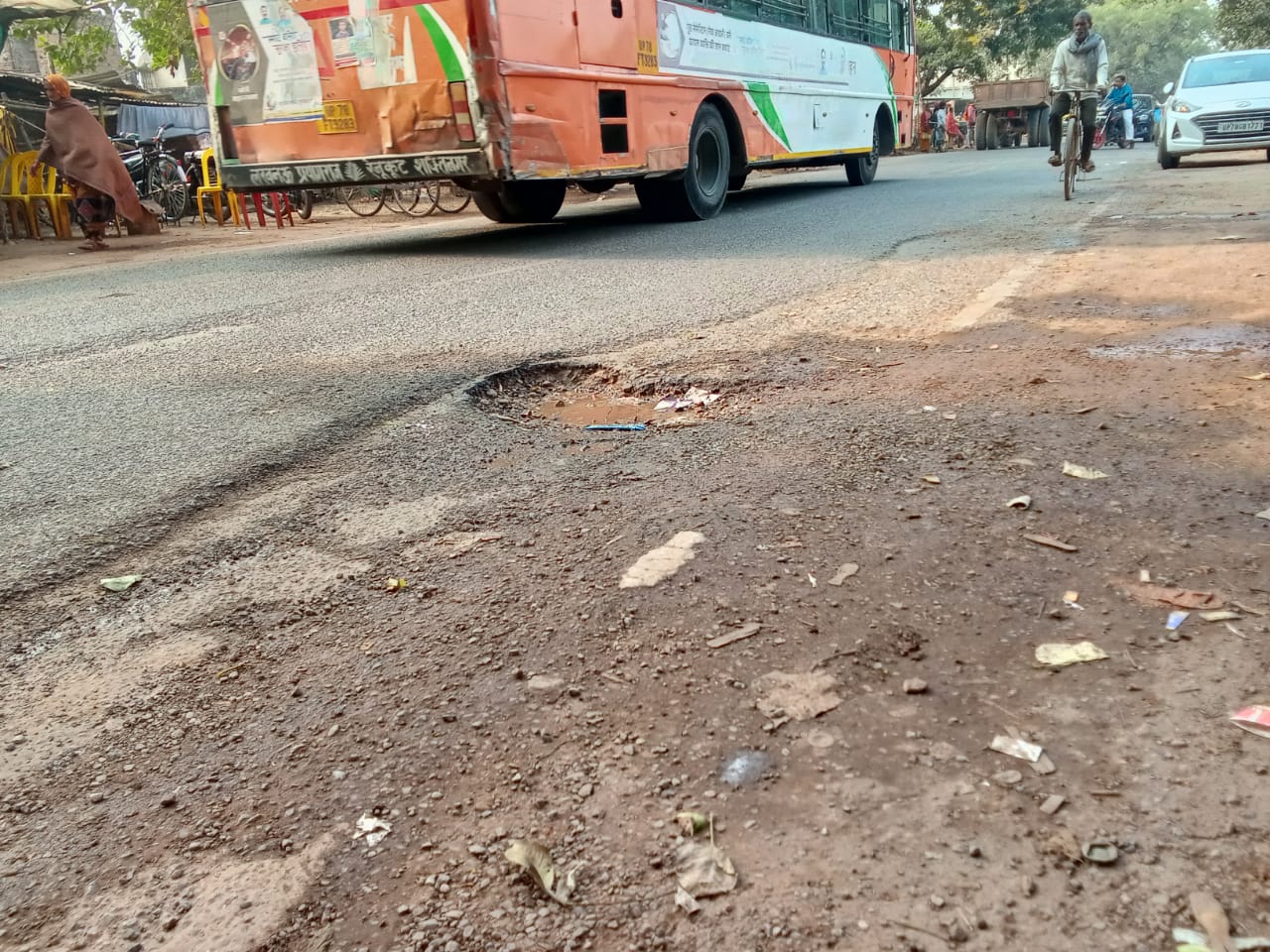 मड़िहान रोडवेज बस स्टैंड के पास सड़क के गड्ढे बने हादसे का सबब