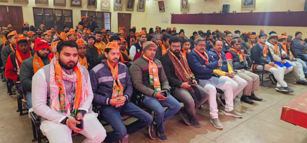 वाराणसी। भारतीय जनता पार्टी युवा मोर्चा, महानगर पं दीनदयाल मण्डल द्वारा आयोजित नव मतदाता सम्मेलन गुरुवार को पराड़कर स्मृति भवन में सम्पन्न हुआ। इसमें मुख्य अतिथि शहर दक्षिणी के विधायक/ पूर्व मंत्री डॉ नीलकंठ तिवारी रहें। उन्होंने युवाओं को मतदान के विषय में जागरूक किया एवं राम मंदिर के निर्माण होने पर अपना विचार भी व्यक्त किया।