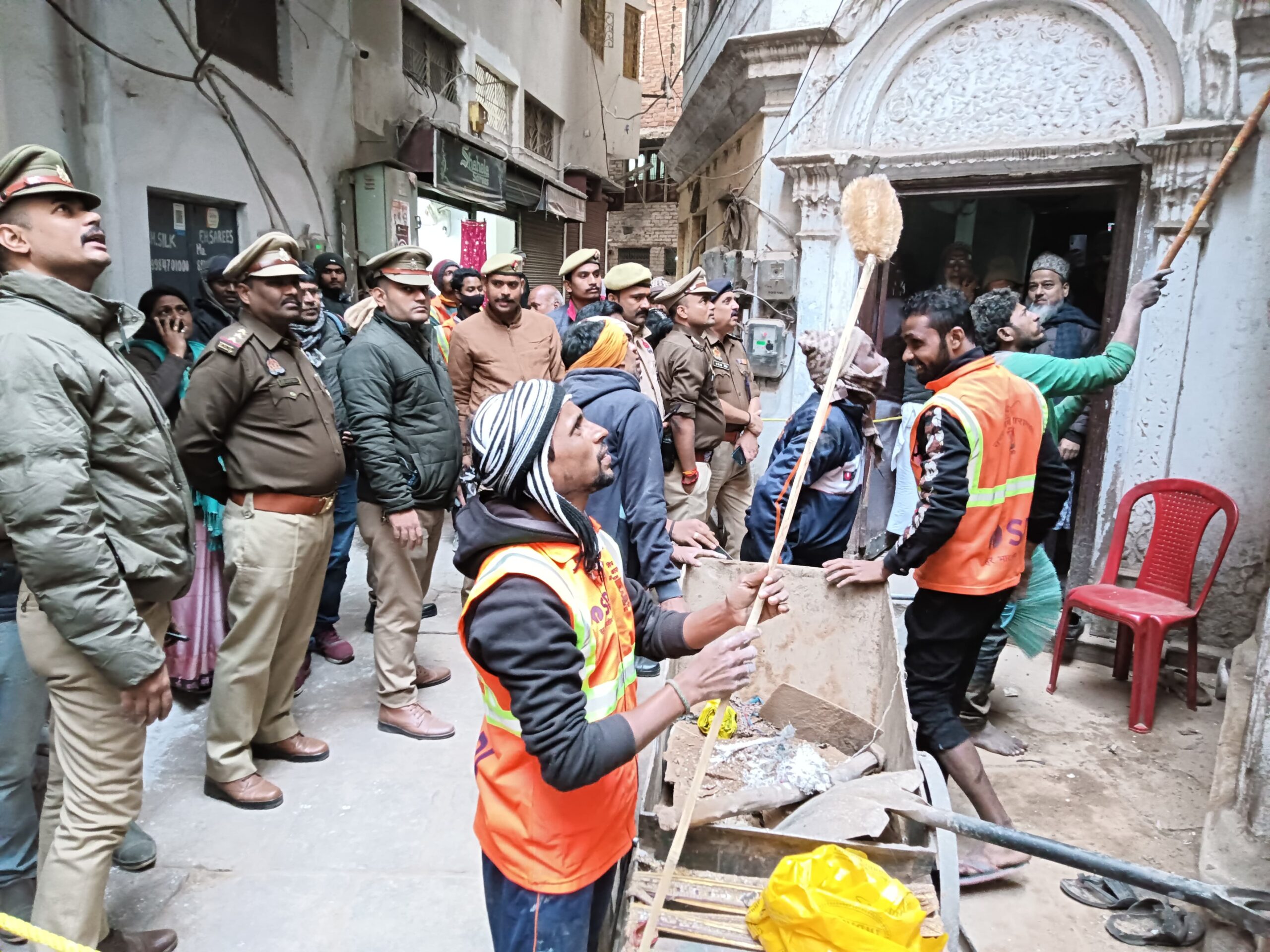 यह क्षेत्र मुस्लिम बहुल होने के कारण मौके पर बड़ी संख्या में पुलिस बल तैनात किया गया है। एडीएम सिटी, डीसीपी काशी गौरव बंसवाल, एडीसीपी सरवन टी और कई अन्य अधिकारी मौके पर मौजूद हैं।