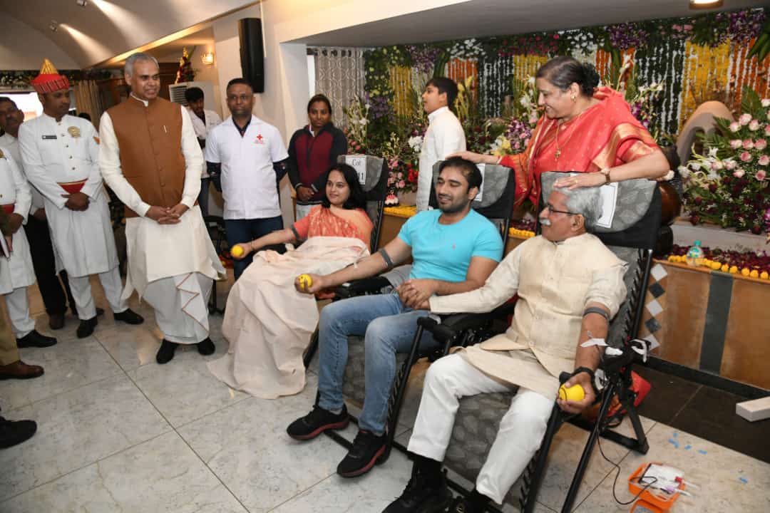 रक्तदान शिविर में महामहिम राज्यपाल जी के पुत्र व पुत्रवधू ने भी रक्तदान किया ।