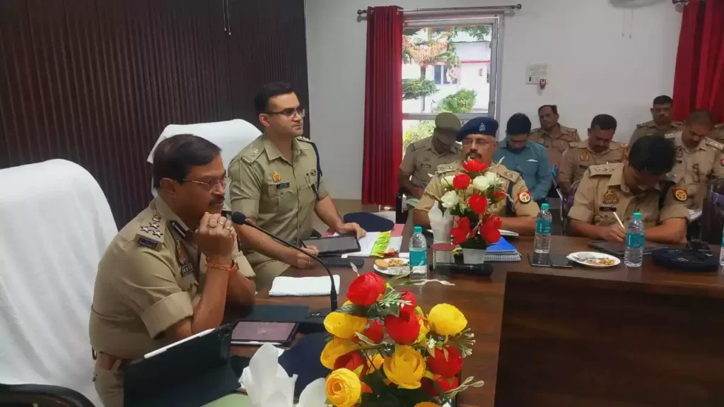 चंदौली। जनपद में शनिवार को वाराणसी परिक्षेत्र के पुलिस उप महानिरीक्षक वाराणसी डॉ. ओमप्रकाश सिंह द्वारा पुलिस अधीक्षक व अपर पुलिस अधीक्षक सदर व आपरेशन, समस्त क्षेत्राधिकारीगण, समस्त थाना व सम्बन्धित शाखा प्रभारियों के साथ पुलिस लाइन स्थित सभागार कक्ष में समीक्षा एवं आगामी त्यौहारों के दृष्टिगत बैठक की गई। पुलिस उप महानिरीक्षक ने जनपद के समस्त अधिकारियों थाना प्रभारियों को 15 अगस्त (स्वतंत्रता दिवस) और रक्षाबंधन के उपलक्ष्य में सुरक्षा व्यवस्था चुस्त-दुरुस्त करने का निर्देश दिया।