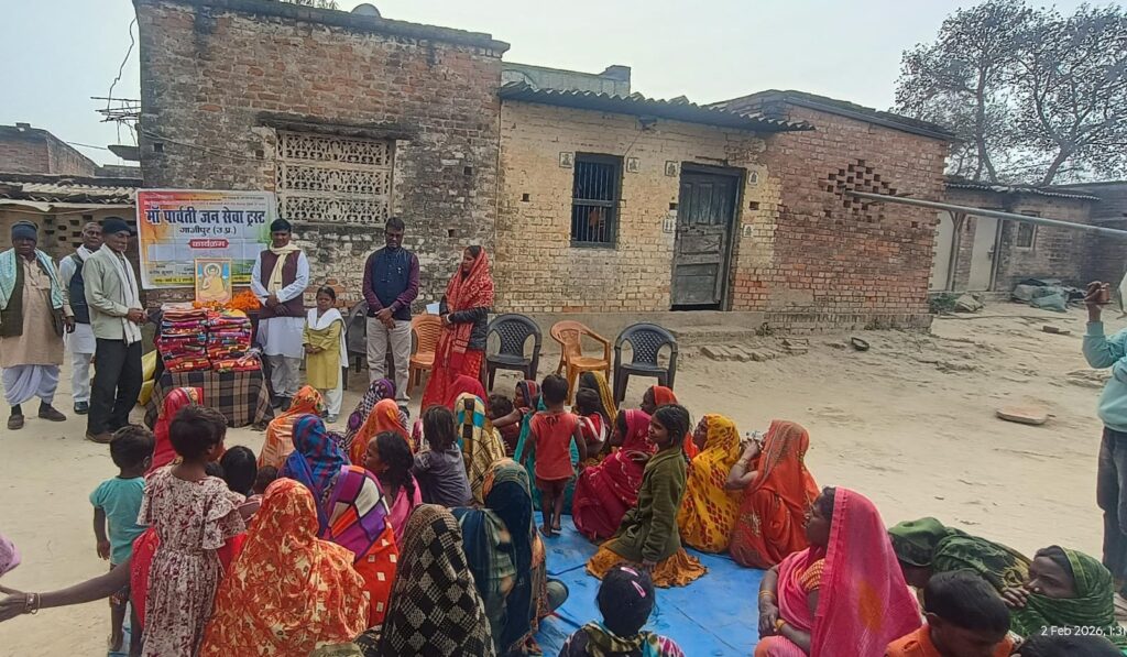 गाजीपुर (जयदेश)। माँ पार्वती जन सेवा ट्रस्ट, गाजीपुर (उत्तर प्रदेश) के तत्वावधान में विकास खंड सादात के ग्राम सभा उकराँव की मुसहर (बनवासी) बस्ती में शीत ऋतु को ध्यान में रखते हुए गरीब, असहाय एवं जरूरतमंद लोगों के बीच कंबल वितरण कार्यक्रम का आयोजन किया गया। कार्यक्रम का मुख्य उद्देश्य ठंड से प्रभावित वंचित एवं कमजोर वर्ग को राहत प्रदान करना रहा।