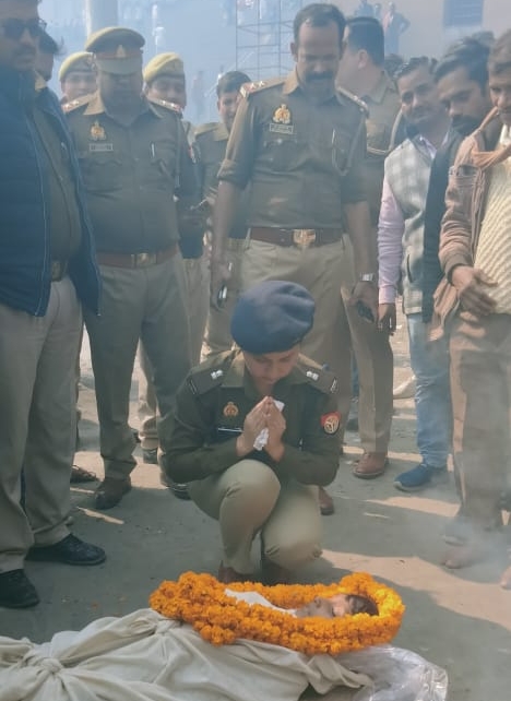 मासूम के अंतिम संस्कार में एसीपी चेतगंज ने अर्पित की श्रद्धांजलि