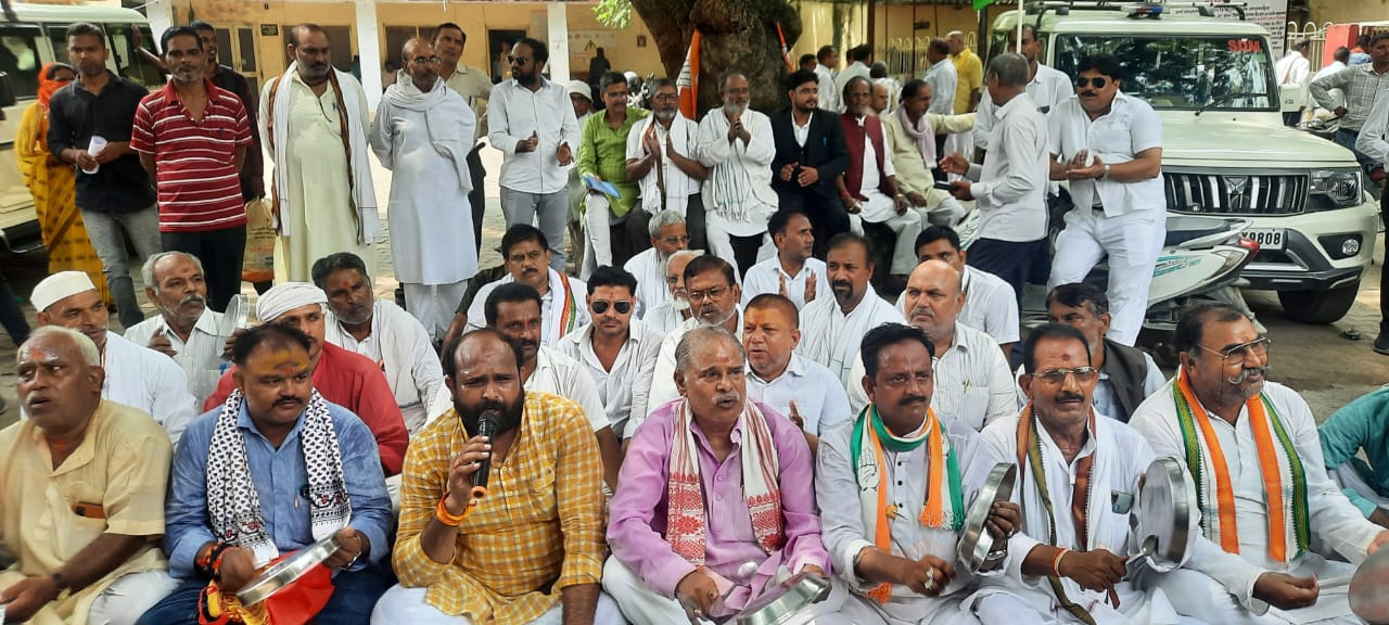 मिर्जापुर में ताली-थाली बजाकर कांग्रेस का प्रदर्शन, किसानों के मुआवजे और खाद की मांग
