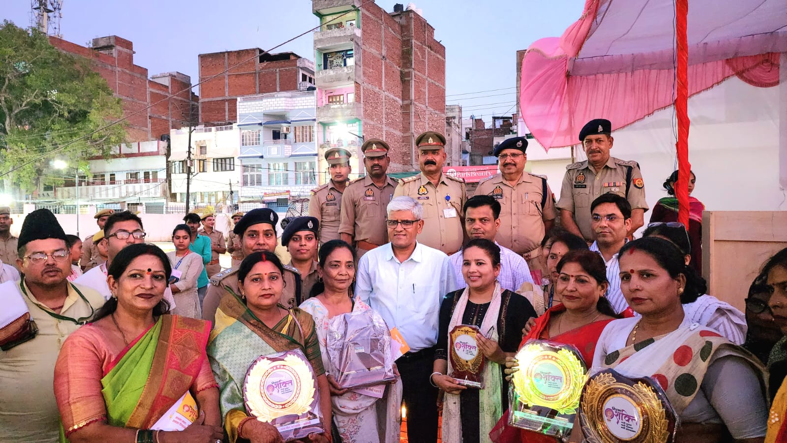 वाराणसी: शासन के आदेश से कमिश्नरेट वाराणसी में चलाए जा रहे मिशन शक्ति के अंतर्गत महिला सशक्तिकरण एवं महिलाओं को जागरूक करने हेतु अभियान शक्ति दीदी के क्रम में पुलिस आयुक्त कमिश्नरेट वाराणसी की अध्यक्षता एवं अपर पुलिस आयुक्त कानून एवं व्यवस्था कमिश्नरेट वाराणसी महोदय , पुलिस उपायुक्त सुरक्षा कमिश्नरेट वाराणसी अपर पुलिस उपायुक्त महिला अपराध सहायक पुलिस आयुक्त दशाश्वमेध सहायक पुलिस आयुक्त यातायात , सहायक पुलिस कमिश्नरेट वाराणसी प्रोबेशन अधिकारी जनपद वाराणसी सुधाकर पांडे, निरुपमा सिंह महिला कल्याण अधिकारी, रिजवाना , प्रभारी निरीक्षक चौक , प्रभारी निरीक्षक लक्सा एवं थानाध्यक्ष दशाश्वमेध की उपस्थिति में थाना क्षेत्र में स्थित राजनरायण स्मारक उद्यान में एक शिविर का आयोजन किया गया जहां अधिकारीगण द्वारा महिलाओं एवं बालिकाओं को उत्तर प्रदेश सरकार द्वारा उनके उत्थान हेतु चलाई जा रही योजनाओं के बारे में सभी को अवगत कराया गया एवं सभी महिलाओ/बालिकाओं को उनके अधिकारों एवं कर्तव्यों के बारे में अवगत कराया गया एवं क्षेत्र में महिलाओ के कल्याण हेतु तत्पर महिलाओ को पुलिस आयुक्त कमिश्नरेट वाराणसी द्वारा सम्मान चिन्ह प्रदान कर सम्मानित भी किया गया तथा सूक्ष्म जलपान भी कराया गया , सम्मेलन में मौजूद समस्त क्षेत्रवासियों द्वारा कमिश्नरेट वाराणसी पुलिस द्वारा चलाए जा रहे अभियान की भूरि भूरि प्रसंशा की गई एवं सम्मान पाकर सभी महिलाओं द्वारा चौक एवं कमिश्नरेट पुलिस को धन्यवाद ज्ञापित किया गया ।