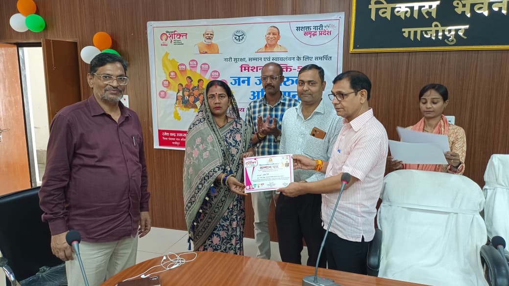 गाजीपुर। मिशन शक्ति 5.0 के अंतर्गत विकास भवन सभागार में जिला पंचायत विभाग द्वारा जागरूकता कार्यक्रम का आयोजन किया गया। कार्यक्रम में महिला सशक्तिकरण के क्षेत्र में उत्कृष्ट कार्य करने वाली चार महिला ग्राम प्रधानों को सम्मानित किया गया।