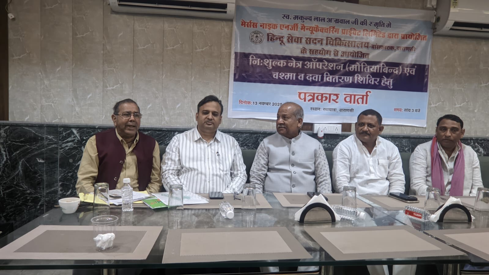 वाराणसी। सामाजिक सरोकार और जनसेवा के प्रति समर्पित नाइक एनर्जी मैन्युफैक्चरिंग प्रा. लि. द्वारा स्वर्गीय मुकुंद लाल अग्रवाल की स्मृति में नि:शुल्क नेत्र परीक्षण एवं मोतियाबिंद ऑपरेशन मेगा शिविर का आयोजन किया जा रहा है। यह शिविर 15 नवम्बर 2025, प्रातः 9 बजे से दोपहर 2 बजे तक हिन्दू सेवा सदन चिकित्सालय, बॉसफाटक, और नाइक एनर्जी के परिसर (प्लॉट नं. 279, गणेशपुर, भेल के सामने, तरना) में आयोजित होगा।