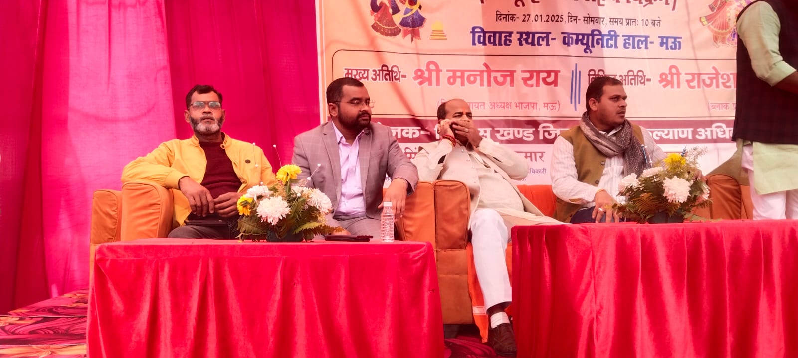 मुख्य अतिथि मनोज राय, जिला पंचायत अध्यक्ष, ने मुख्यमंत्री सामूहिक विवाह योजना के बारे में जानकारी दी और बताया कि मऊ जिले का कुल लक्ष्य 1051 है, जिसमें से अब तक 655 जोड़ों का विवाह संपन्न कराया जा चुका है और उनके खातों में 35000 रूपये की राशि भेजी जा चुकी है। अपर जिलाधिकारी मऊ ने उपस्थित जोड़ों को बेहतर दाम्पत्य जीवन के लिए आशीर्वाद दिया। उन्होंने मीडिया और सम्मानित नागरिकों से अपील की कि वे इस योजना से अधिक से अधिक लाभार्थियों को जोड़ने के लिए प्रयास करें।