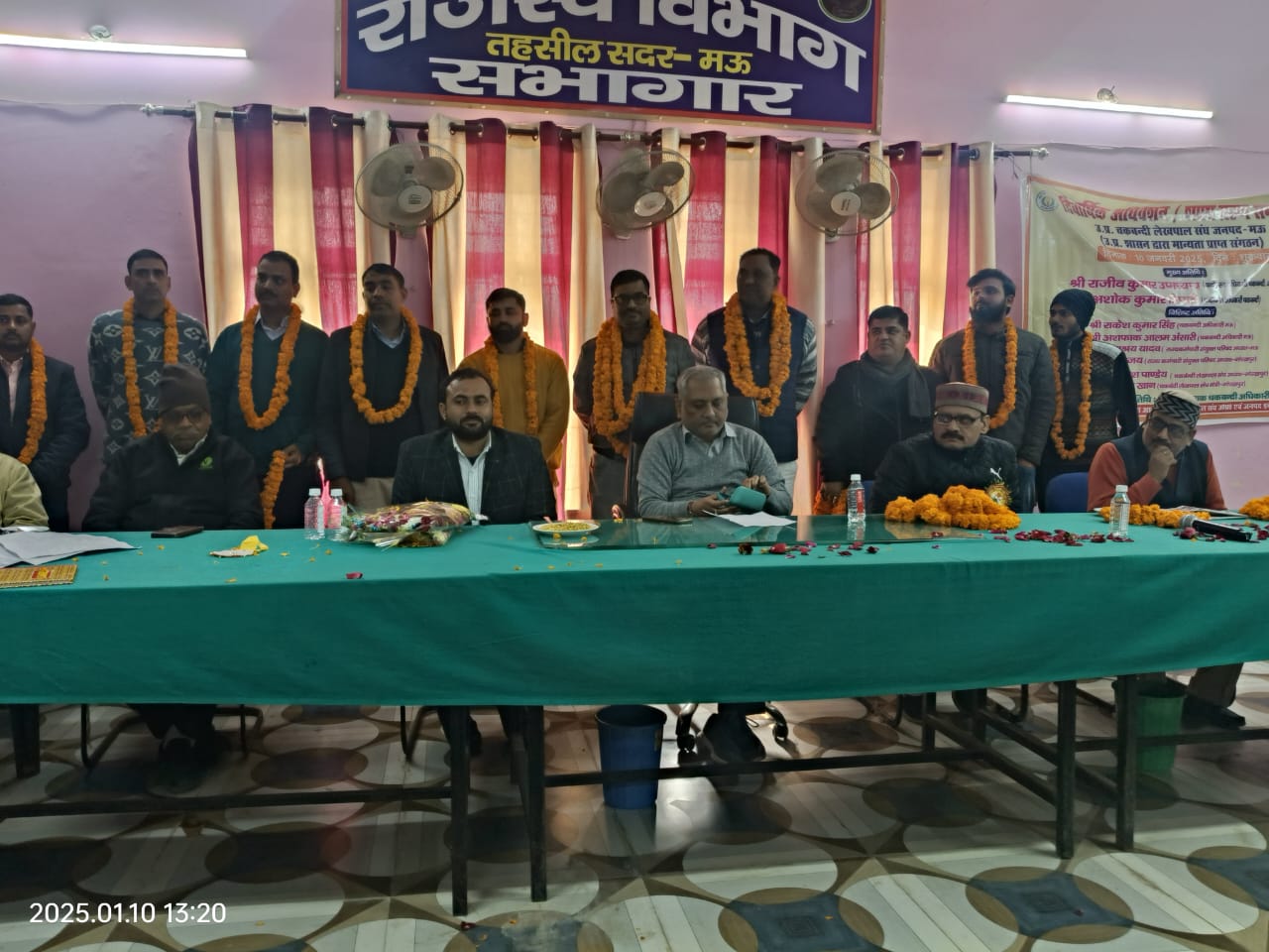 मऊ में शुक्रवार को सदर तहसील सभागार में उत्तर प्रदेश चकबंदी लेखपाल संघ के द्विवार्षिक अधिवेशन के साथ शपथ ग्रहण समारोह का आयोजन हुआ।