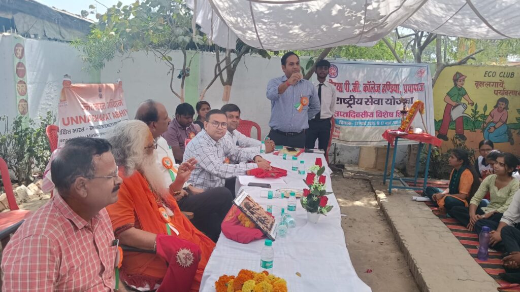 प्रयागराज। हण्डिया पी.जी. कॉलेज, हण्डिया, प्रयागराज की राष्ट्रीय सेवा योजना (NSS) इकाई द्वारा ग्राम बासुपुर स्थित प्राथमिक विद्यालय परिसर में आयोजित सप्त दिवसीय विशेष शिविर का समापन समारोह उत्साह एवं गरिमामय वातावरण में सम्पन्न हुआ। कार्यक्रम में मुख्य अतिथि के रूप में श्री सच्चा बाबा आध्यात्मिक संस्कृत महाविद्यालय, नैनी के पूर्व प्राचार्य डॉ. चंद्र देव मिश्र उपस्थित रहे।