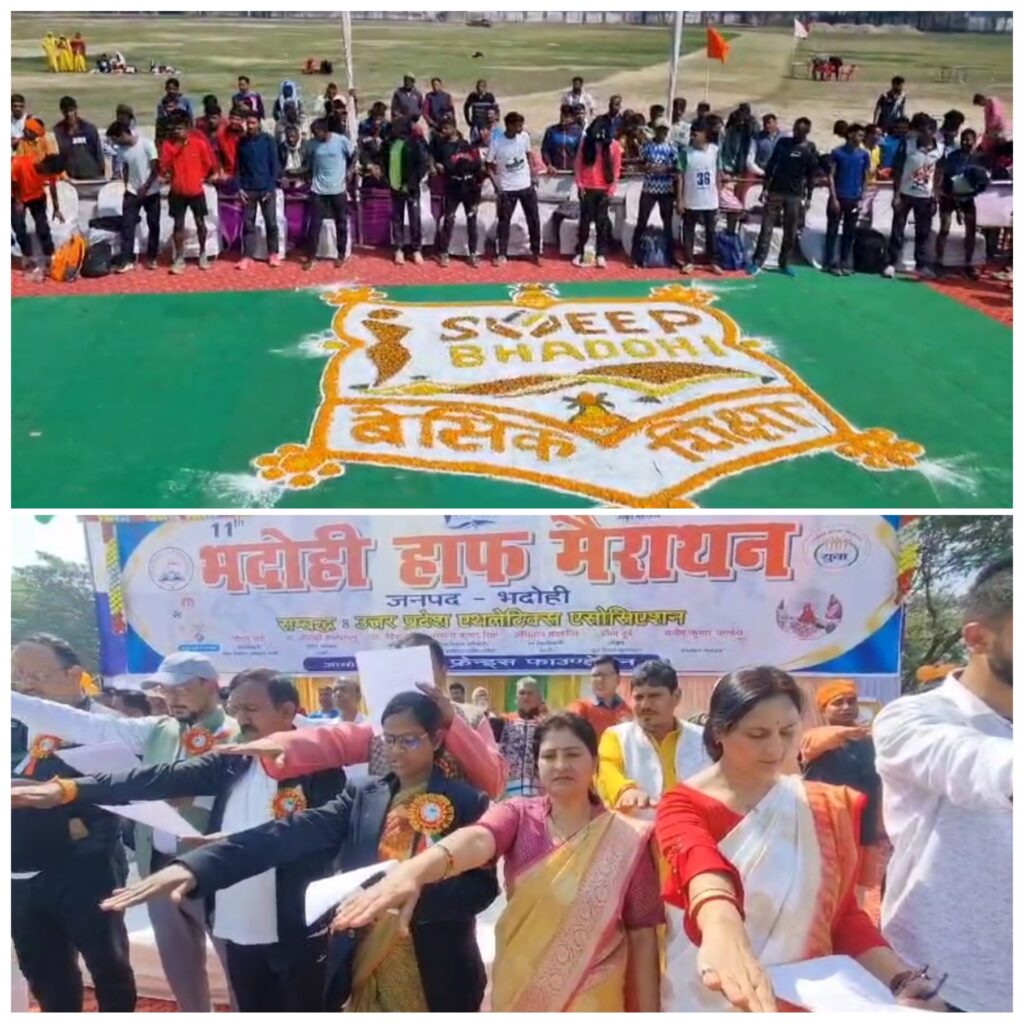 इस बार इस मैराथन को जिला प्रशासन ने स्वीप के साथ जोड़ते हुए मतदाताओं के को जागरूक करने के लिए आयोजित कराया। इस मैराथन को दौड़ेगा भदोही मतदान के लिए स्लोगन दिया गया। मैराथन का शुभारंभ जिला पंचायत अध्यक्ष अनिरुद्ध त्रिपाठी, डीएम गौरांग राठी और एसपी मीनाक्षी कात्यायन ने किया। इसके साथ ही इन अधिकारियों ने मैराथन दौड़ में भी भाग लिया। पूरे 21 किलोमीटर की दौड़ के दौरान सड़क के दोनों तरफ विभिन्न स्कूलों के छात्र-छात्राओं ने खड़े होकर जहां एथलीटों का उत्साह बढ़ाया वहीं मतदाताओं को भी जागरूक किया। इन छात्र-छात्राओं के हाथों में मतदाता जागरूकता से संबंधित लिखे गए नारों की तख्तियां भी ली हुई थी।