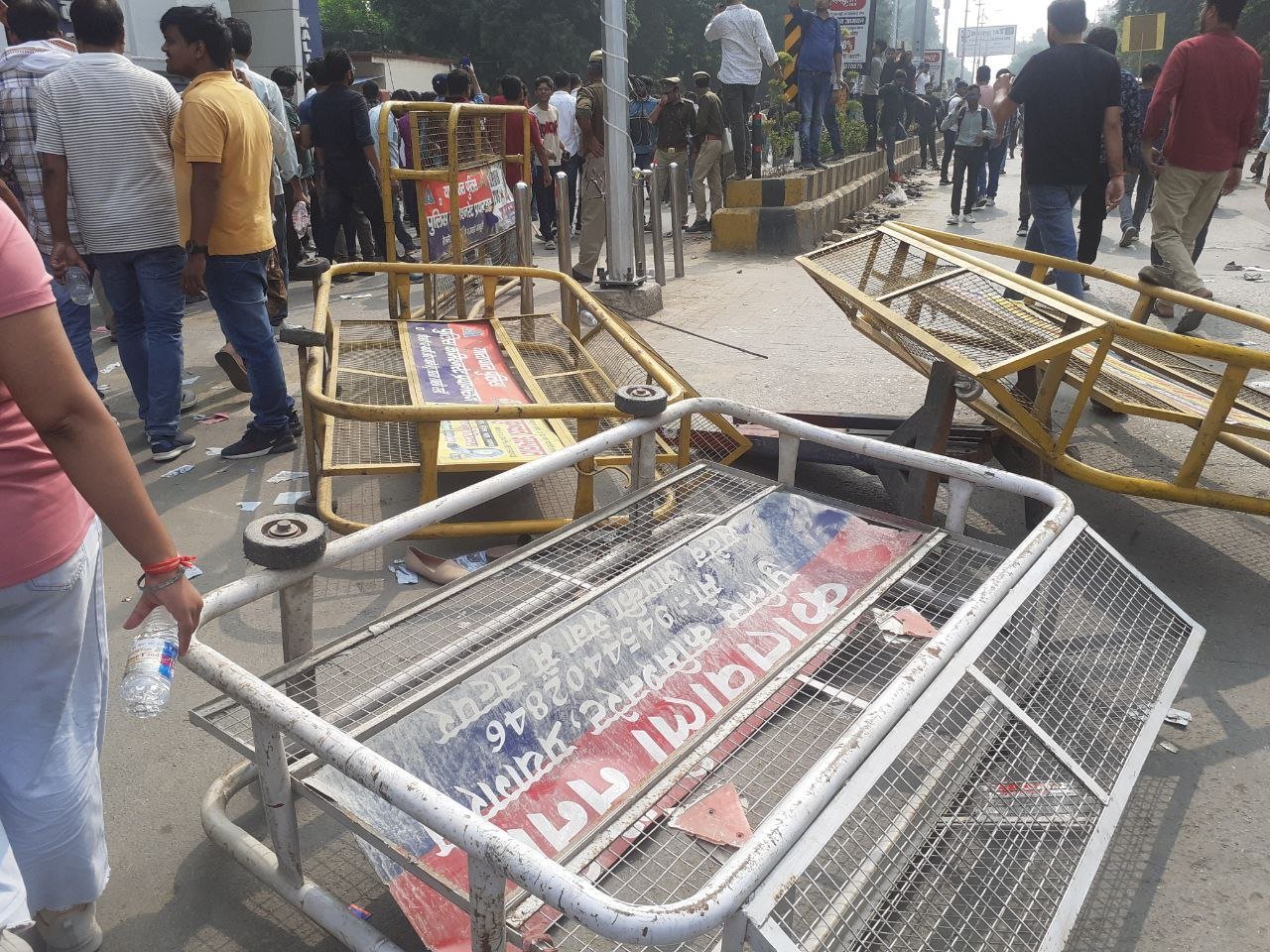 प्रयागराज। पीसीएस और आरओ/एआरओ प्रारंभिक परीक्षाओं को दो दिन में आयोजित करने और इन परीक्षाओं में मानकीकरण (नॉर्मलाइजेशन) लागू करने के खिलाफ प्रतियोगी छात्रों का धरना उत्तर प्रदेश लोक सेवा आयोग (यूपीपीएससी) के बाहर गुरुवार को चौथे दिन भी जारी रहा। इस बीच आयोग के कार्यालय के बाहर धरना दे रहे छात्रों को पुलिस ने हटाने की कोशिश की लेकिन छात्रों ने बैरिकेडिंग तोड़ते हुए लोक सेवा आयोग के गेट तक पहुंच गए जिससे पुलिस बेबस नजर आई।