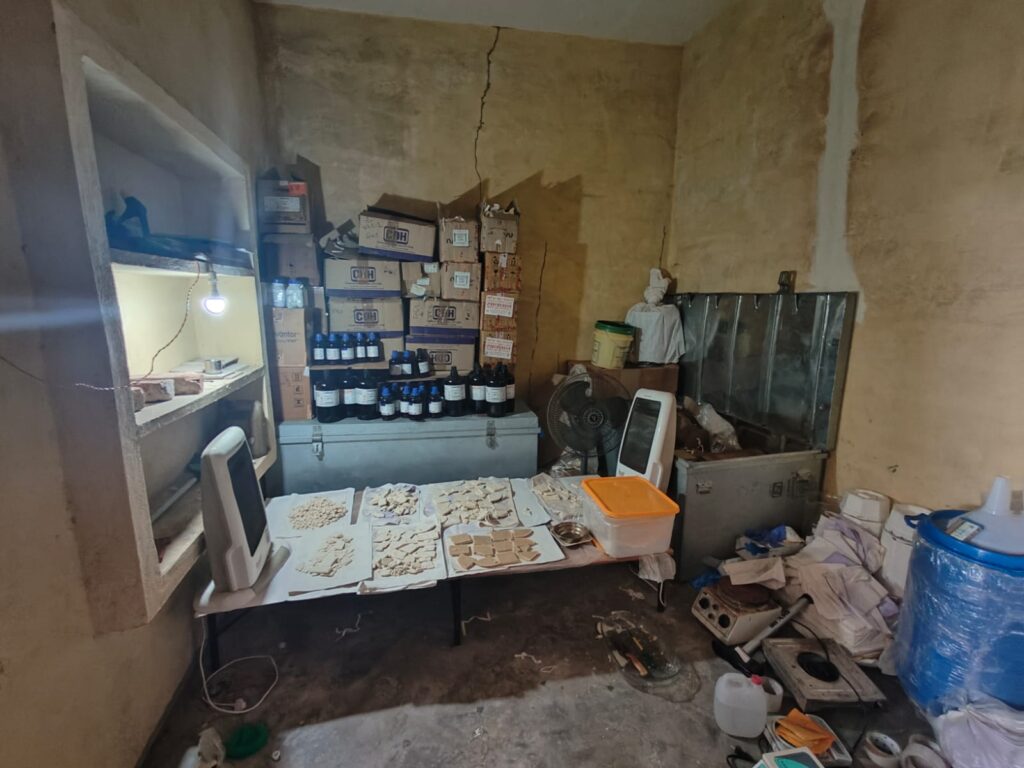 पुलिस ने दोनों अभियुक्तों के पास से नशीला सिंथेटिक ड्रग्स Mephedrone 2500 ग्राम, Methylamine की 152 बोतल, Sodium Hydroxide Pellets की 41 बोतल, Chloroform की 10 बोतल, Hydrocloric Acid के 4 बाक्स, Methylapropi hinon Powder 100 कि०ग्रा०, एक हॉट एयर ओवन, दो जार, दो Magnetic Laper, दो Mini ortark mixer, एक Sterror rod with moter, 4 मोबाइल फोन्स और एक आई 20 कार (MH 04 S7390) बरामद किया है। इन सब की कुल अनुमानित कीमत 30 करोड़ रुपए है।