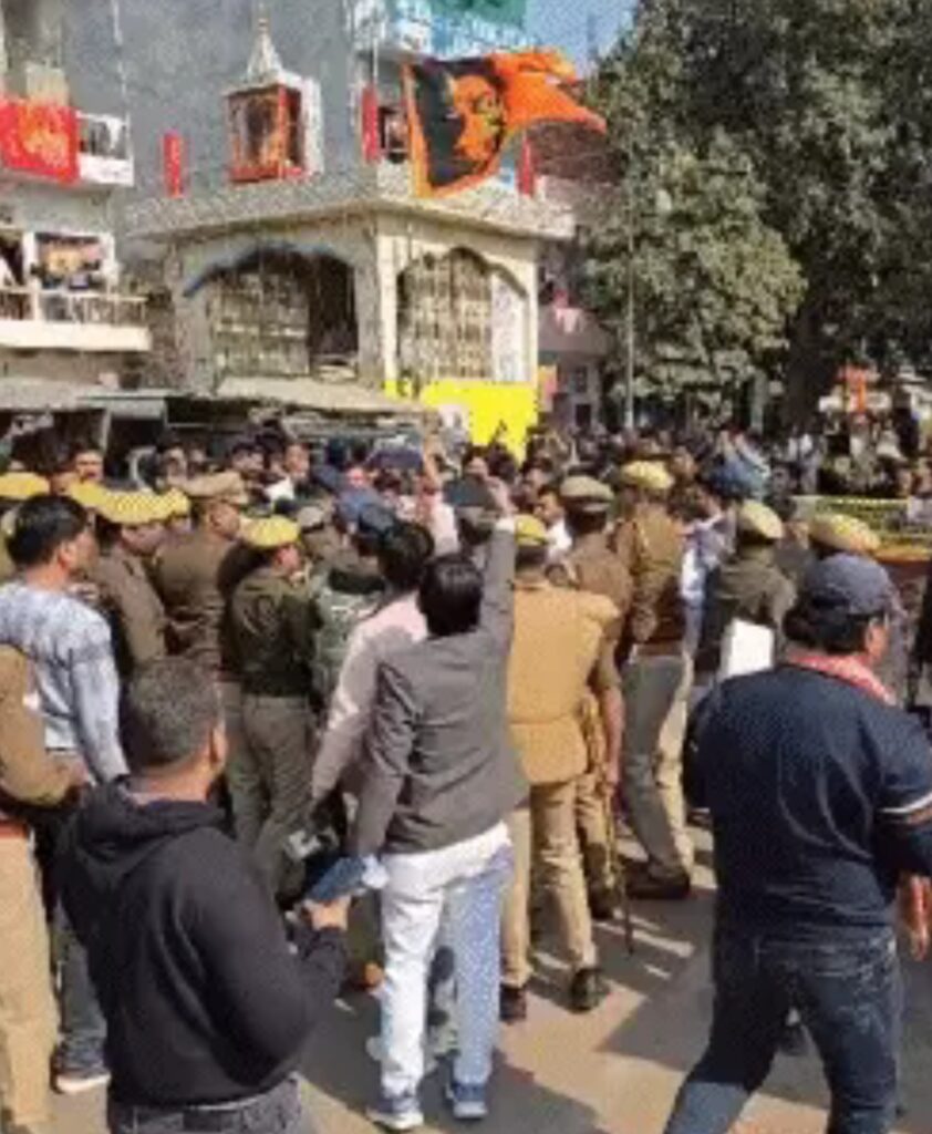 वाराणसी। यूपी कॉलेज परिसर में स्थित मस्जिद को लेकर विवाद गहराता जा रहा है। शुक्रवार को जुमे के दिन करीब 500 से अधिक छात्र भगवा झंडा लेकर कॉलेज पहुंचे और मस्जिद हटाने की मांग को लेकर नारेबाजी की। प्रदर्शनकारियों ने जबरन परिसर में घुसने की कोशिश की जिससे उनकी पुलिस से झड़प हो गई। छात्रों ने बैरिकेडिंग तोड़ दी लेकिन पुलिस ने उन्हें कैंपस में प्रवेश करने से रोक दिया। स्थिति को काबू में लाने के लिए पुलिस ने हल्का बल प्रयोग किया और प्रदर्शनकारियों को खदेड़ दिया।