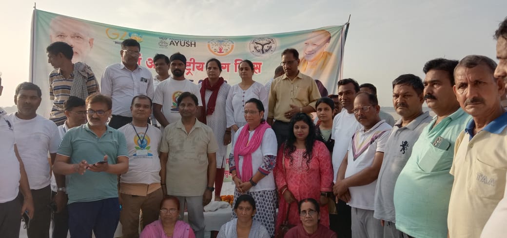 आयुष विभाग द्वारा डॉ राजेंद्र प्रसाद घाट पर योग का अभ्यास किया गया