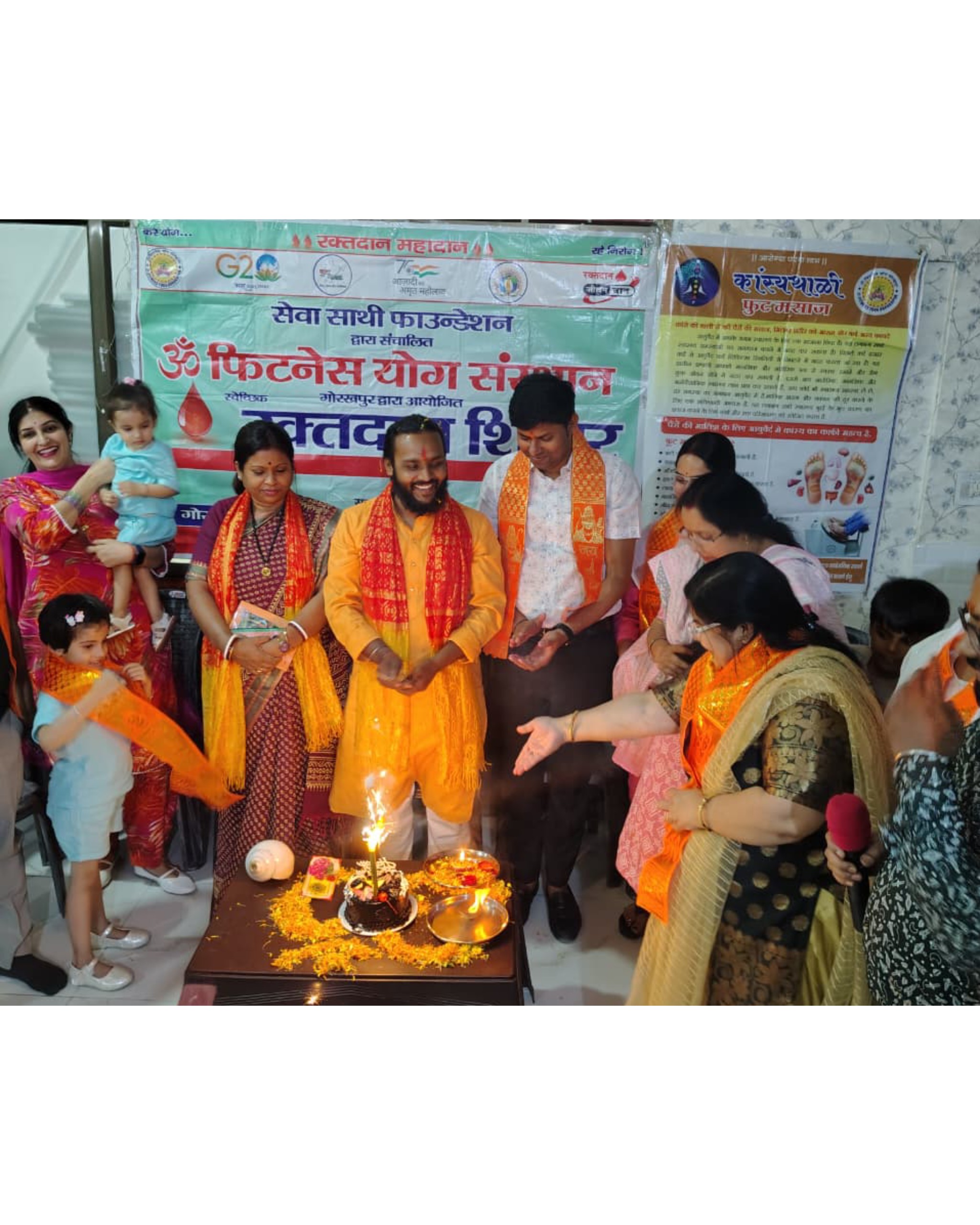 गोरखपुर। ओम फिटनेस योग संस्थान सेवा साथी फाउंडेशन ट्रस्ट के संयुक्त तत्वावधान में भव्य रक्तदान शिविर का आयोजन गोरखपुर चैरिटेबल ब्लड बैंक दाउदपुर गोरखपुर में किया गया। कार्यक्रम की शुरुआत मुख्य अतिथि दिव्य ज्योति जागृति संस्थान गोरखपुर के संचालक स्वामी अर्जुनानंद, विशिष्ट अतिथि महिला समाजसेवी एडवोकेट पूजा गुप्ता का स्वागत अभिनंदन कर शंखनाद ध्वनि से की गई। इसमें समाजसेवा की भावना से ओत-प्रोत अनेक लोगों ने बढ़-चढ़कर भाग लिया।