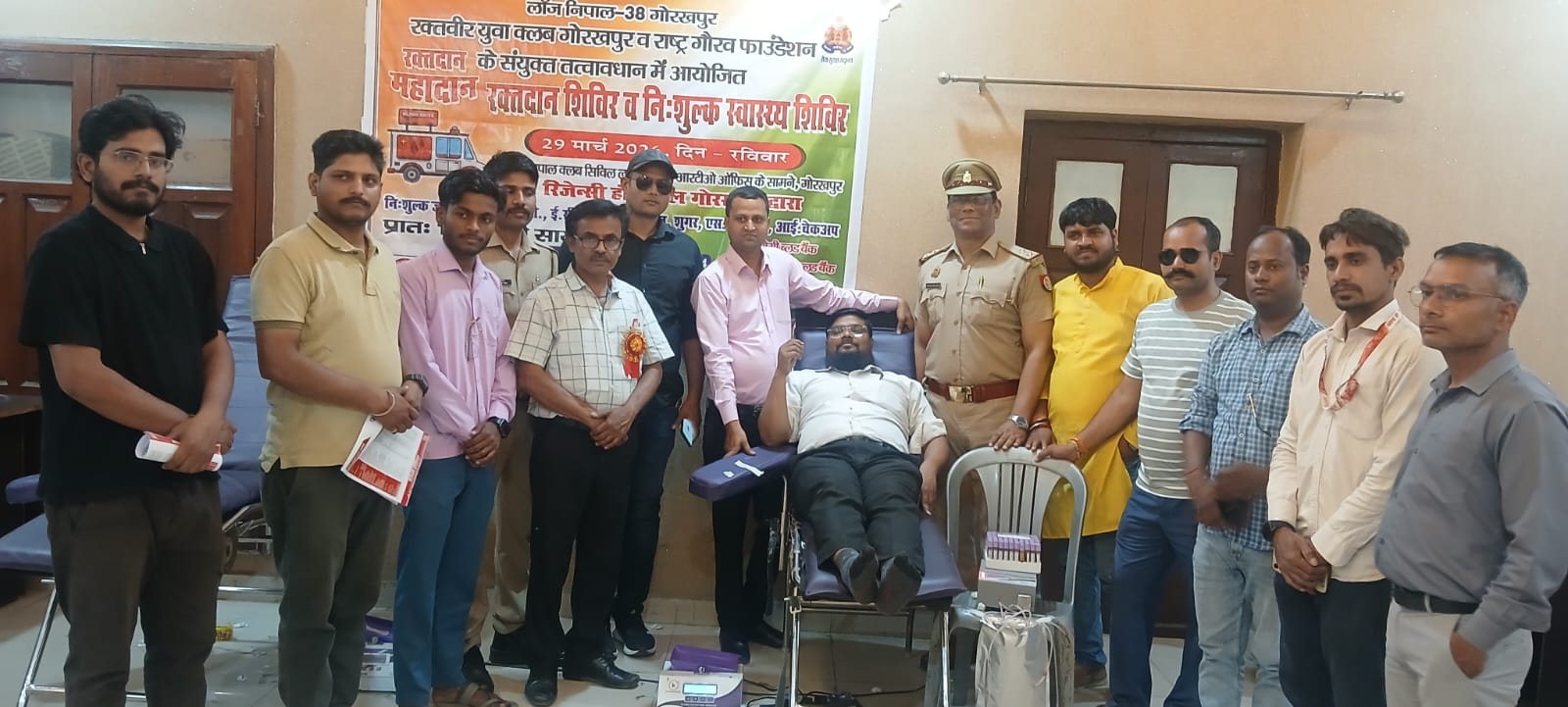 गोरखपुर। रक्तवीर युवा क्लब एवं राष्ट्र गौरव फाउंडेशन के संयुक्त तत्वावधान में नेपाल क्लब सिविल लाइन (पुराना आर.टी.ओ. कार्यालय के सामने) पर विशाल रक्तदान शिविर व नि:शुल्क स्वास्थ्य शिविर का सफल आयोजन किया गया। इस आयोजन में बड़ी संख्या में युवाओं एवं नागरिकों ने उत्साहपूर्वक भाग लिया। कार्यक्रम में रीजेंसी हॉस्पिटल द्वारा बी.पी., हाइट, वजन, शुगर, एस.पी.ओ.-2 एवं सेंटर फॉर साइट गोरखपुर द्वारा नेत्र जांच सहित कई स्वास्थ्य जांचें पूरी तरह नि:शुल्क उपलब्ध कराई गईं। गोरखपुर चैरिटेबल ब्लड बैंक का भी विशेष सहयोग प्राप्त हुआ।