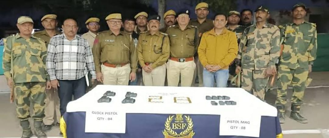 राजस्थान के बाड़मेर जिले में भारत-पाकिस्तान बॉर्डर पर सीमा सुरक्षा बल (BSF) ने सर्च ऑपरेशन के दौरान 4 ग्लॉक पिस्टल, 8 मैगजीन और 78 कारतूस बरामद किए हैं। माना जा रहा है कि ये हथियार पाकिस्तान से भारतीय सीमा में लाए गए थे। गणतंत्र दिवस से पहले इस बरामदगी ने सुरक्षा एजेंसियों को सतर्क कर दिया है।