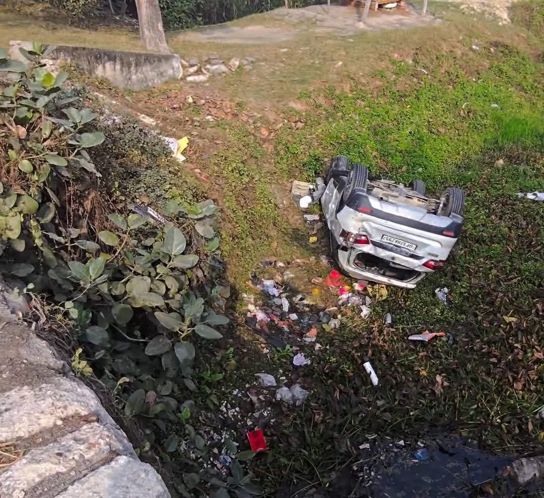 रामजानकी मार्ग पर पुल के पास खाई में गिरी कार