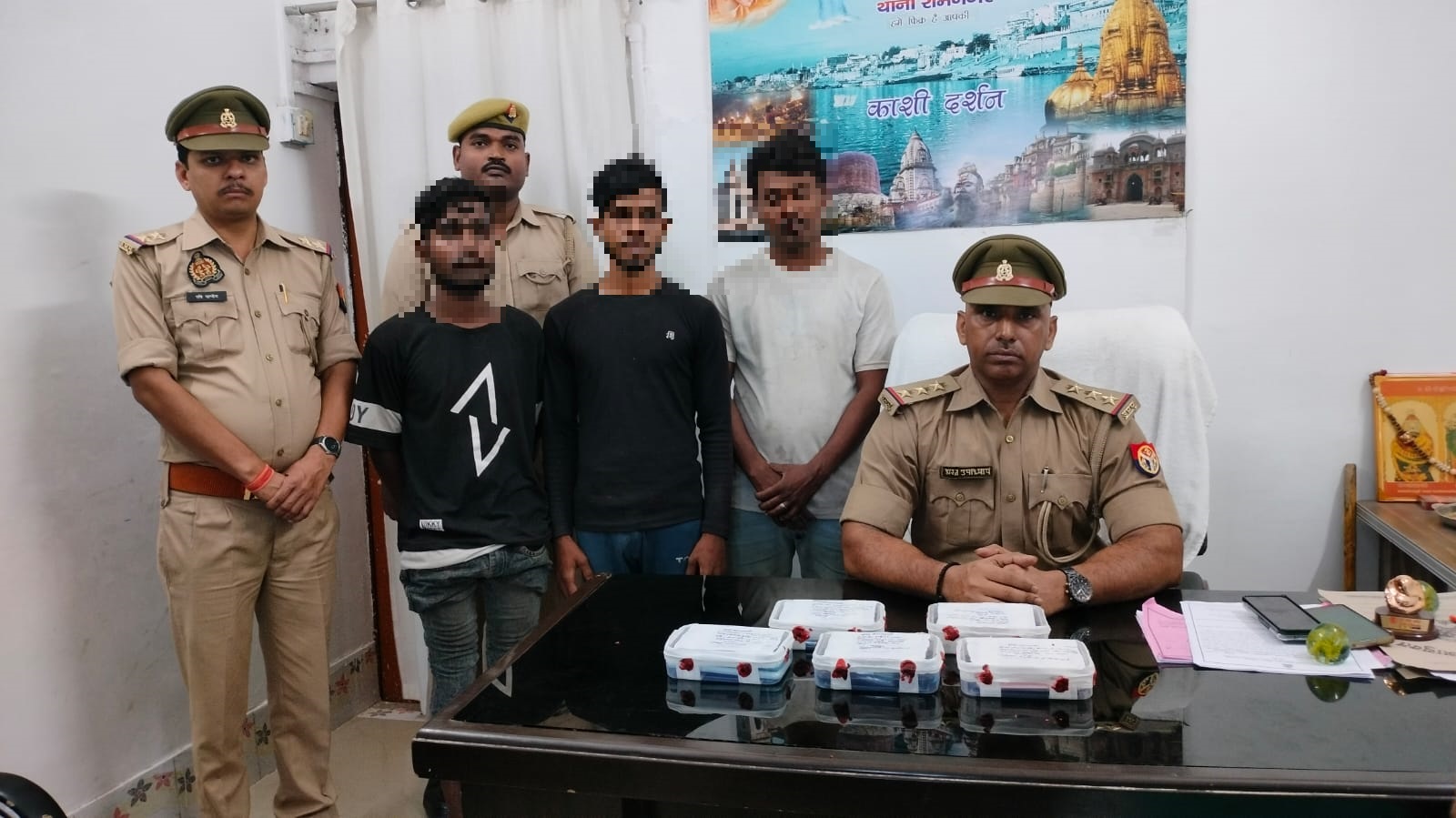 वाराणसी: अपराध व अपराधियों के विरूद्ध चलाये जा रहे अभियान के तहत पुलिस उपायुक्त जोन काशी कमिश्नरेट वाराणसी आर0एस0 गौतम व अपर पुलिस उपायुक्त जोन काशी कमिश्नरेट वाराणसी के पर्यवेक्षण व सहायक पुलिस आयुक्त कोतवाली व प्रभारी निरीक्षक रामनगर के नेतृत्व में थाना रामनगर पुलिस द्वारा मुखबिर खास की सूचना के आधार पर भगवान अवधूत समाधि स्थल के पास खाली मैदान हेलीपैड सूजाबाद थाना रामनगर कमिश्नरेट वाराणसी से अभियुक्तगण दीपक साहनी पुत्र चुन्नी लाल साहनी निवासी ग्राम सूजाबाद पोस्ट कुष्ठ सेवा आश्रम रामनगर वाराणसी, राजेश केसरी पुत्र गोपाल केसरी निवासी के -66 / 39 लोहटिया वाराणसी, गोलू खान पुत्र स्व0 नशरथ खान निवासी बहादुरपुर नेवाटी टोला जनपद चंदौली को हिरासत पुलिस में लिया गया तथा उनके कब्जे/निशानदेही पर विभिन्न कम्पनियों के चोरी के 10 मोबाइल फोन बरामद किया गया । अभियुक्तगण उपरोक्त की गिरफ्तारी व माल बरामदगी के आधार पर थाना स्थानीय पर मु0अ0सं0-0205/2023 धारा 41/411/413/414 भा0द0वि0 पंजीकृत किया गया ।
