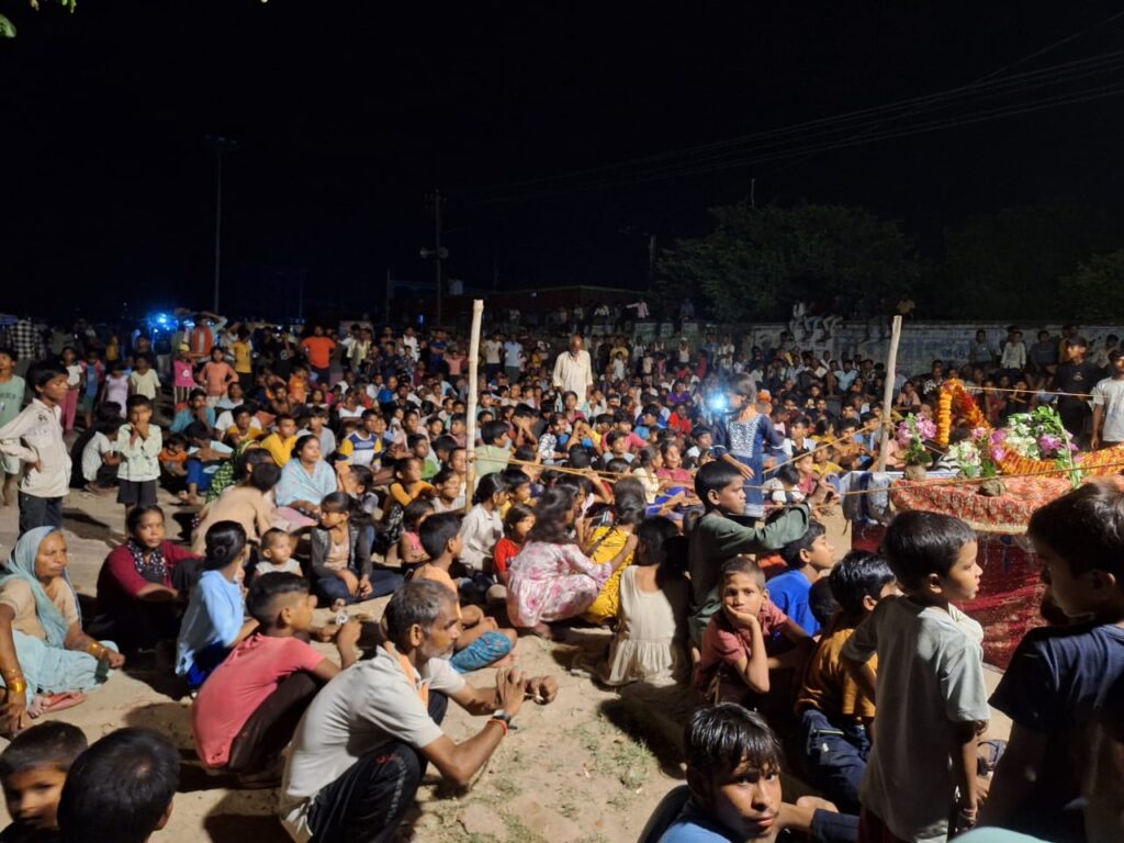 रामलीला मैदान रंग-बिरंगी रोशनी और सजावट से सजा हुआ था। मंच के दोनों ओर झंडे और पारंपरिक झांकियों ने दर्शकों का ध्यान खींचा। बच्चे और बड़े दोनों ही उत्साह के साथ कलाकारों के हर प्रदर्शन पर तालियों की गड़गड़ाहट से माहौल को और जीवंत बना रहे थे।