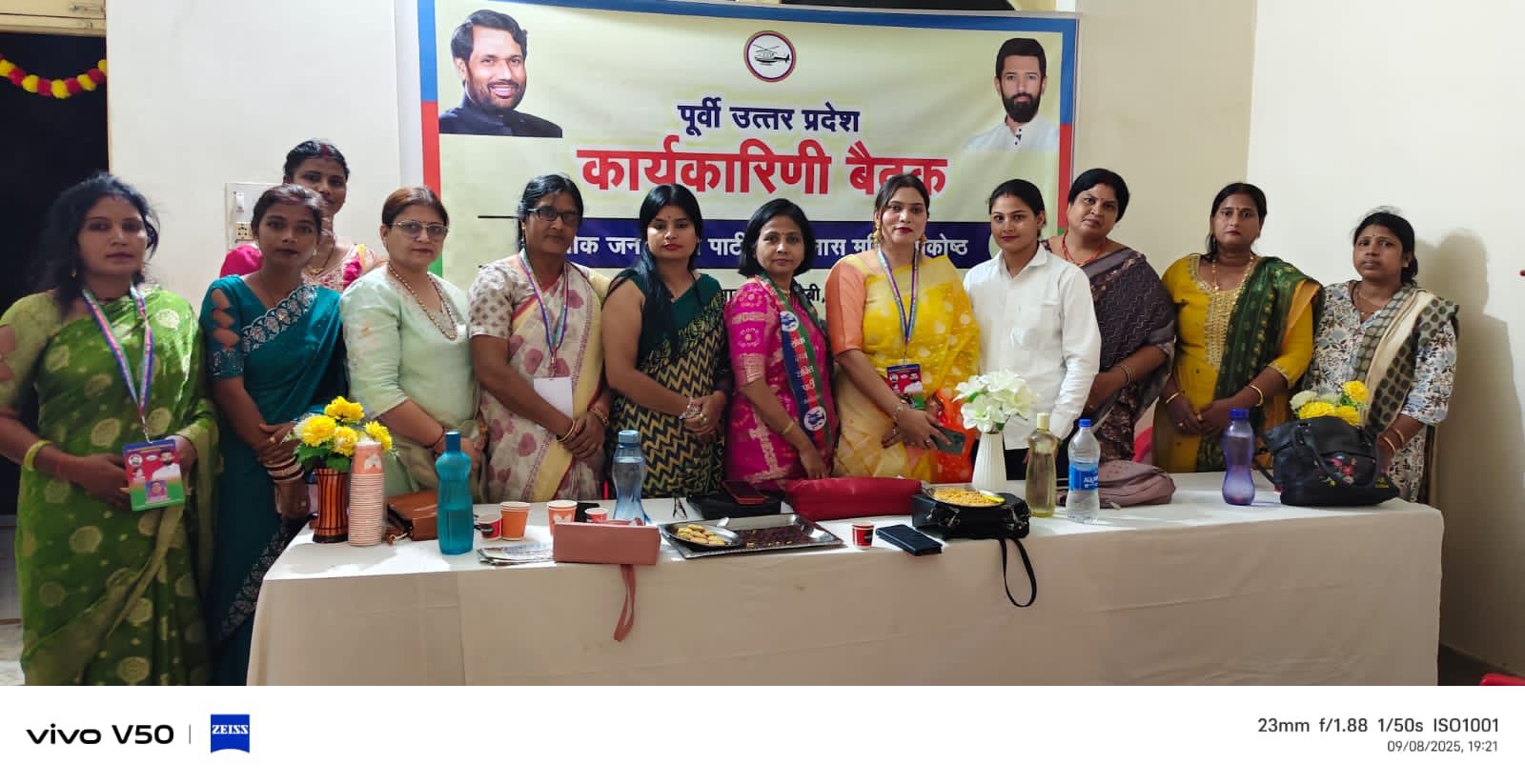 वाराणसी। लोक जनशक्ति पार्टी रामविलास महिला प्रकोष्ठ पूर्वी उत्तर प्रदेश की कार्यकारिणी बैठक 8 सितंबर 2025 को पवन तुलस्यान के निवास पर शाम 5 बजे से आयोजित की गई। इस बैठक का संचालन सीमा सिंह, प्रधान महासचिव लोक जनशक्ति पार्टी रामविलास महिला मोर्चा पूर्वी उत्तर प्रदेश ने किया, जिन्होंने अपने नेतृत्व और संगठनात्मक क्षमता का प्रदर्शन करते हुए बैठक को सफलतापूर्वक संपन्न कराया। बैठक की अध्यक्षता प्रदेश अध्यक्ष डॉ. प्रीति उपाध्याय ने की।