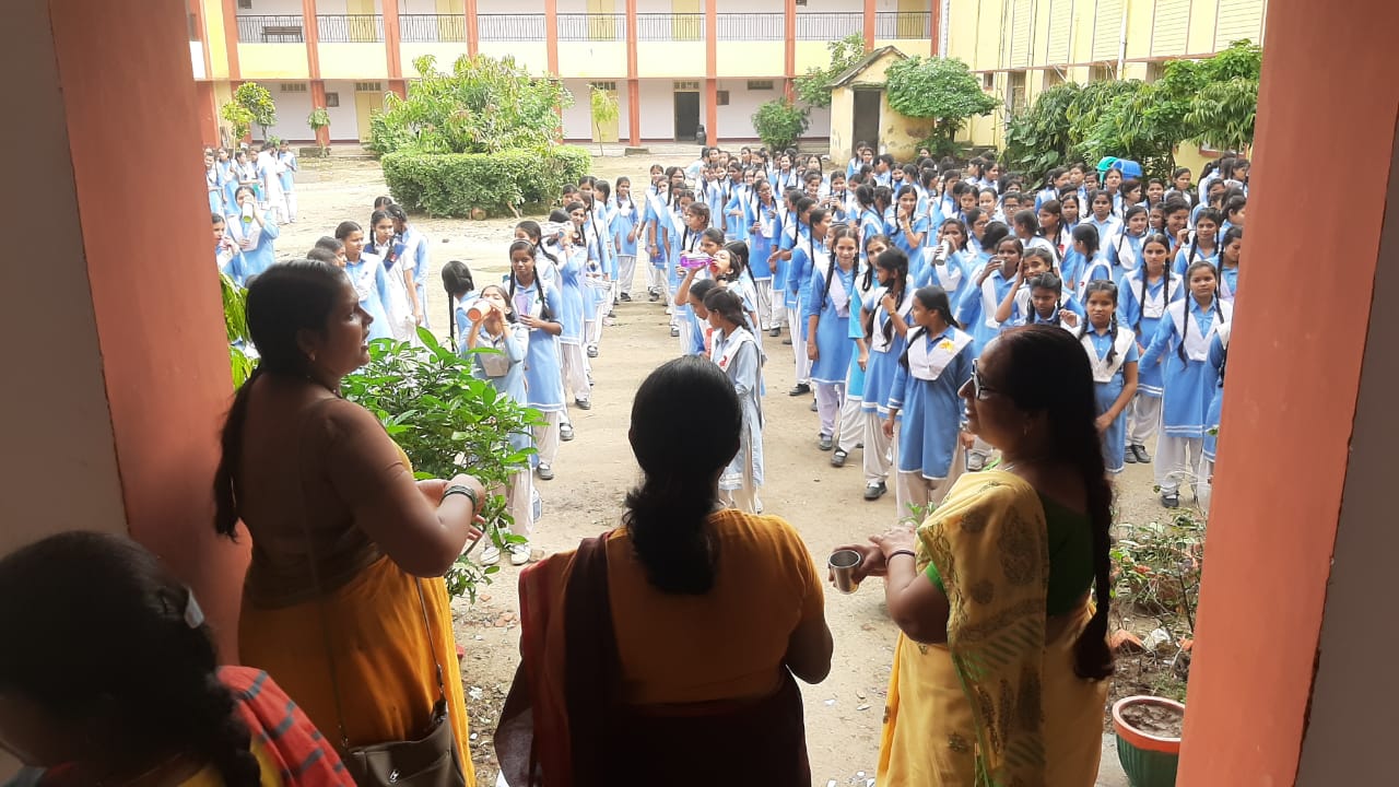 राष्ट्रीय कृमि मुक्ति दिवस के अवसर पर छात्राओं को खिलाई गई एल्बेंडाजोल की गोली