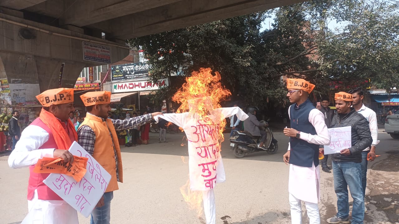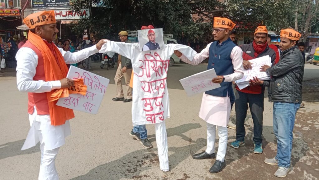 राष्ट्रीय यदुवंश परिषद ने आशापुर चौराहे पर अखिलेश यादव का फूंका पुतला