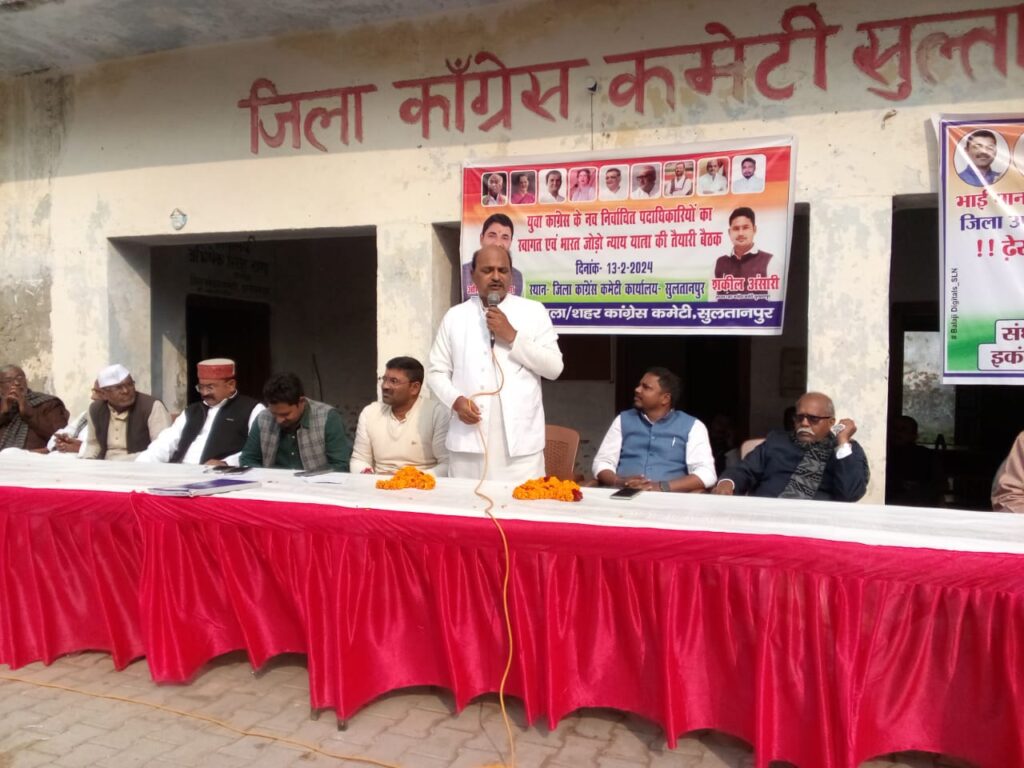 सुल्तानपुर। जिले में मंगलवार को जिला कांग्रेस कमेटी कार्यालय पर युवा कॉंग्रेस के नवनिर्वाचित पदाधिकारीयों का स्वागत और भारत जोड़ो न्याय यात्रा के संबंध में तैयारी बैठक का आयोजन किया गया। जिला कांग्रेस के अध्यक्ष अभिषेक सिंह राणा के नेतृत्व व शहर कांग्रेस कमेटी के अध्यक्ष शकील अंसारी की अध्यक्षता में बैठक आयोजित की गई। बैठक में बतौर मुख्य अतिथि प्रदेश महासचिव व जोनल प्रभारी योगेंद्र मिश्र व विशिष्ट अतिथि प्रदेश सचिव जनपद प्रभारी अर्जुन पासी कार्यक्रम में शामिल हुए।