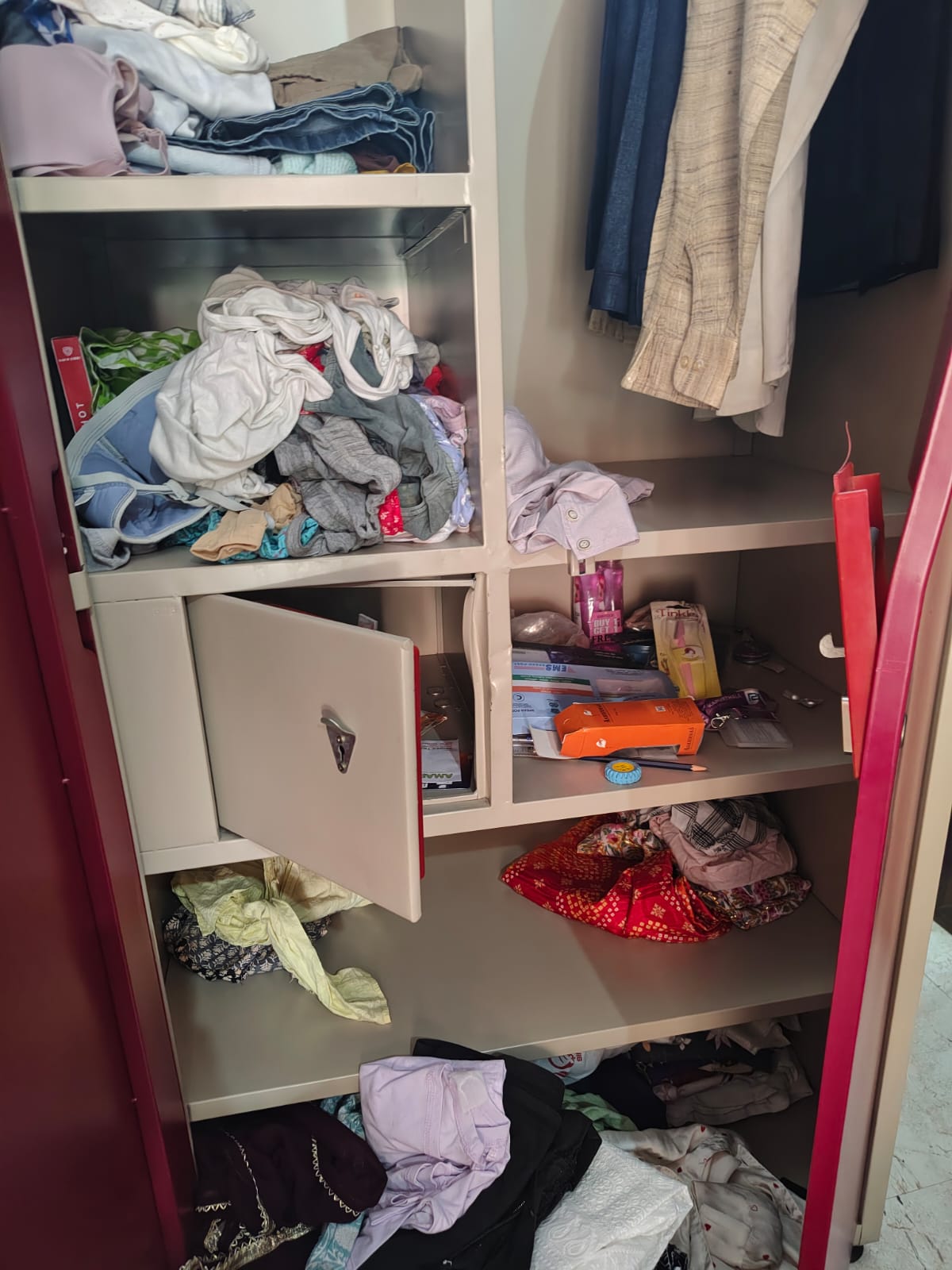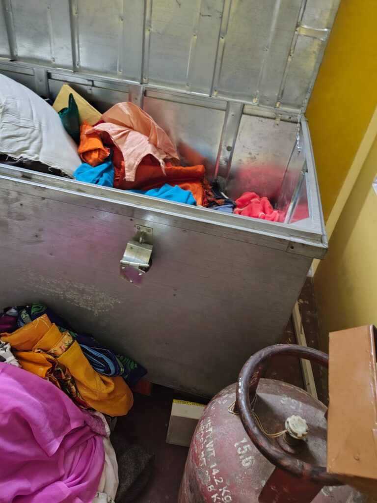 उन्होंने चोरी गये सामान का विवरण में सोने के गहने में मंगलसूत्र:1, सोने का हार: 2,झुमका (तीन लरिया):1,सोने की चेन: 1,कान के टॉप्स : 2, मांगटीका, नथिया -बाली: 2 सेट,अंगूठी: 16 (सोने की), सोने के कड़े: 2, सूई धागा: 1, तथा चांदी के गहनों में पायल: 7 जोड़ी, करधनी: 2, चोटी: 1, हथिया: 2, चांदी के सिक्के: 4 तथा नकद 30,000 बताया गया है।
