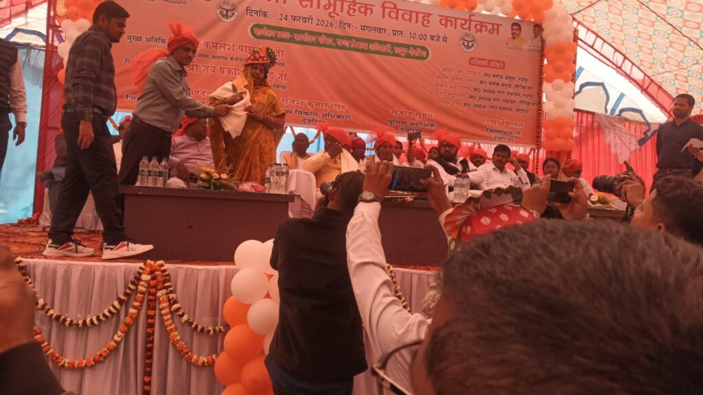 देवरिया। रुद्रपुर के ब्लॉक परिसर में आयोजित सामूहिक विवाह समारोह में 39 जोड़ों ने विधि-विधान के साथ सात फेरे लेकर वैवाहिक जीवन की नई शुरुआत की। कार्यक्रम में मुख्य अतिथि के रूप में विधायक जयप्रकाश निषाद एवं उपजिलाधिकारी नम्रता सिंह उपस्थित रहीं। इस अवसर पर ब्लॉक प्रमुख ऊषा सिंह सहित अन्य प्रशासनिक अधिकारी और जनप्रतिनिधि भी मौजूद रहे।