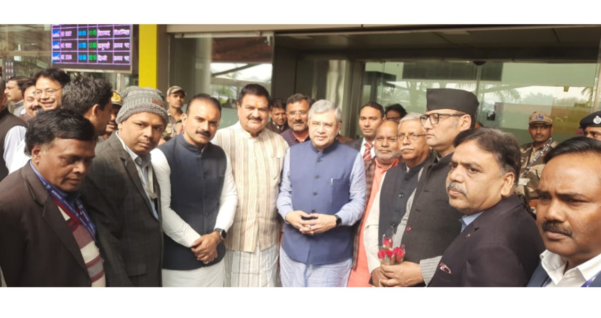 रेल मंत्री का एयरपोर्ट पर हुआ जोरदार स्वागत