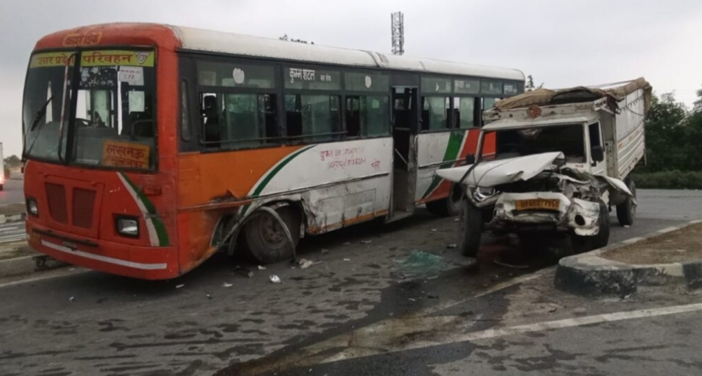 रोडवेज बस और पिकअप की भिड़ंत में यात्री घायल