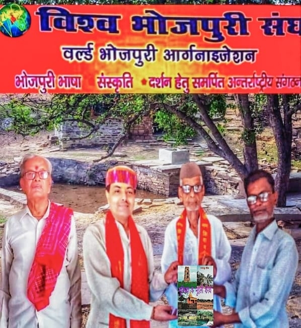 पं.अपूर्व नारायण तिवारी ‘बनारसी बाबू’ द्वारा ठेठ भोजपुरी में लिखित पुस्तक ‘भूरिश्रवा के भुइली शेरवां ‘ का लोकार्पण करते हुये उसे पं.हरिराम द्विवेदी ‘हरि भइया’ को समर्पित किया गया।