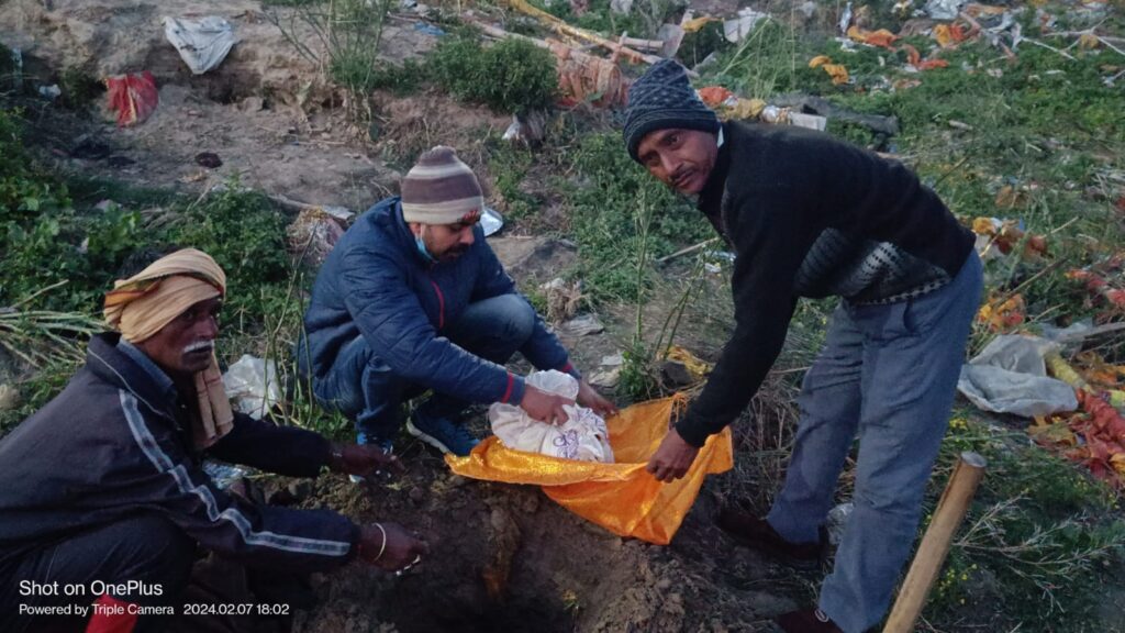 जिसकी शिनाख्त नहीं होने पर एवं 72 घण्टे होने के उपरांत नवजात शिशु (लड़का) के लाश को कुँवर वीरेन्द्र सिंह सामाजिक कार्यकर्ता जिन्होंने अब तक लावारिस 1500 के करीब लावारिस को वारिस बनाकर संकल्प लेकर दिन रात दाह संस्कार करना ,हेड कांस्टेबल राजेन्द्र कुमार दूबे, एवं हेड कांस्टेबल , राजेश कुमार सिंह के सहयोग से मर्चरी रूम से पोस्टमॉर्टम हाऊस ले जाकर पोस्टमॉर्टम कराने के बाद अति प्राचीन श्मशानघाट पर अन्तिम दाहसंस्कार किया गया है। इस दौरान कुँवर वीरेन्द्र थोड़े भावुक हो गए थे। अन्य मौजूद लोगों ने भगवान से दिवंगत आत्मा को शान्ति प्रदान करने की प्रार्थना भी किया।