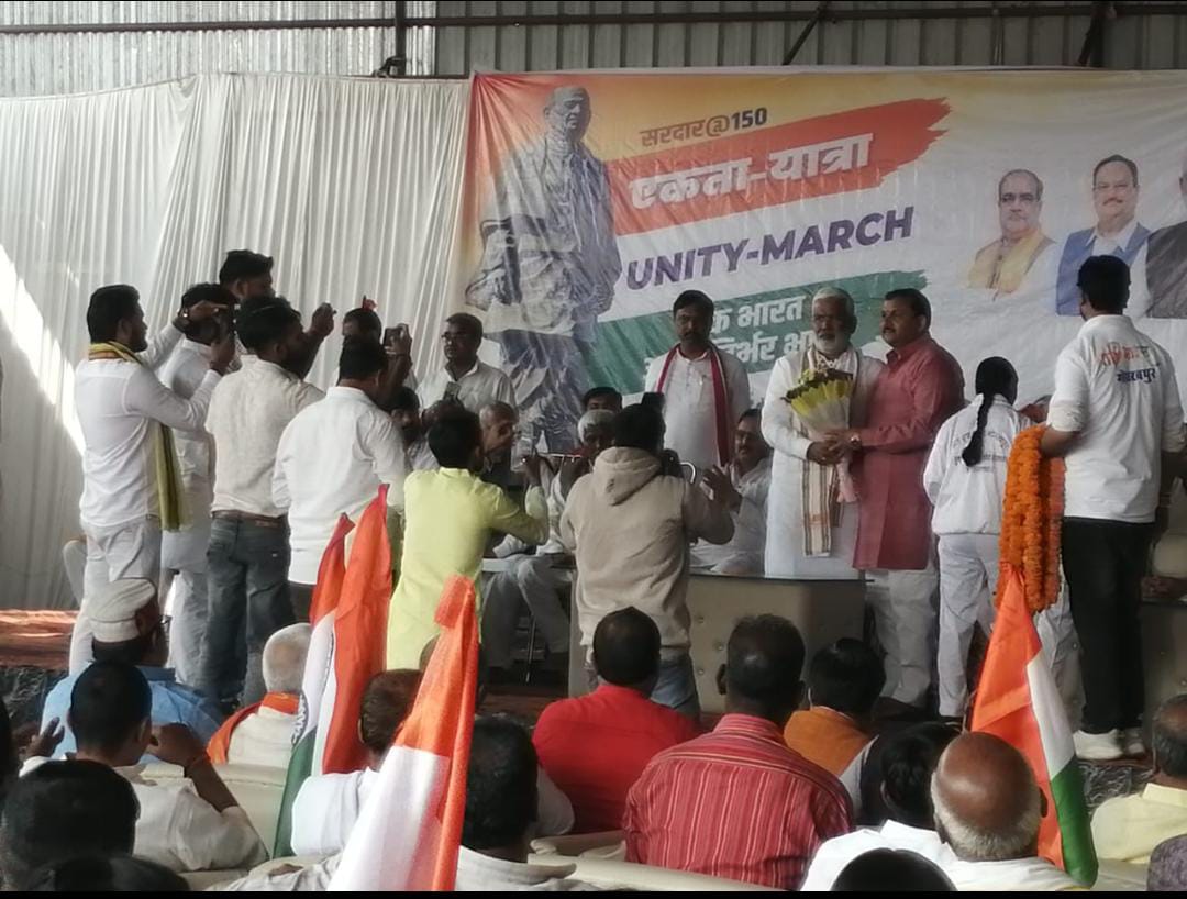 गोरखपुर। “वंदे मातरम” के 150 वर्ष पूर्ण होने के उपलक्ष्य में सहजनवां नगर पंचायत क्षेत्र में भव्य एकता यात्रा का आयोजन किया गया। इस अवसर पर प्रदेश के जल शक्ति मंत्री स्वतंत्र देव सिंह मुख्य अतिथि के रूप में शामिल हुए। कार्यक्रम में समाज के सभी वर्गों की भागीदारी देखने को मिली, जिससे पूरा क्षेत्र देशभक्ति की भावना से सराबोर हो उठा।