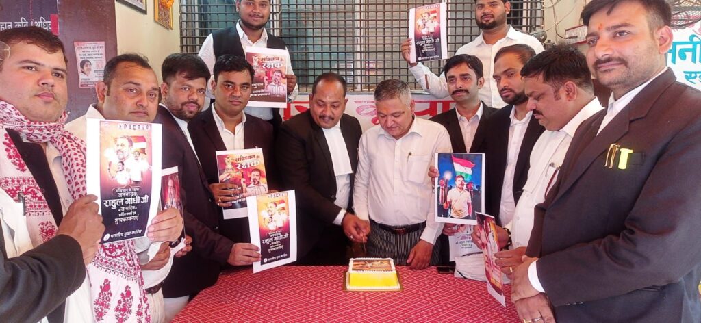वाराणसी : अधिवक्ताओं ने केक काटकर मनाया राहुल गांधी का 54 वां जन्मदिन