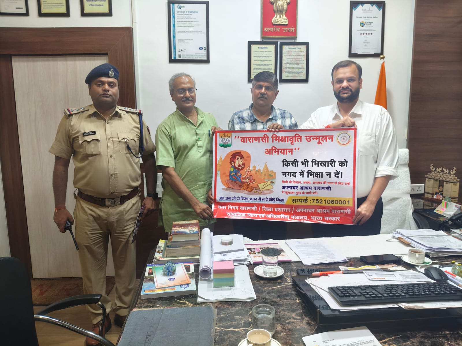 वाराणसी जंक्शन स्टेशन परिसर और रेलवे कॉलोनी में भिक्षावृत्ति पर रोक लगाने के उद्देश्य से समाजसेवी संस्था अपनाघर आश्रम के कुमार निरंजन और रवि उपाध्य ने स्टेशन निदेशक अर्पित गुप्ता के साथ बैठक की। इस दौरान रेल सुरक्षा बल के सहयोग से भिक्षावृत्ति रोकने के लिए जागरूकता अभियान चलाने और भिक्षुओं को आश्रम ले जाने पर सहमति बनी।