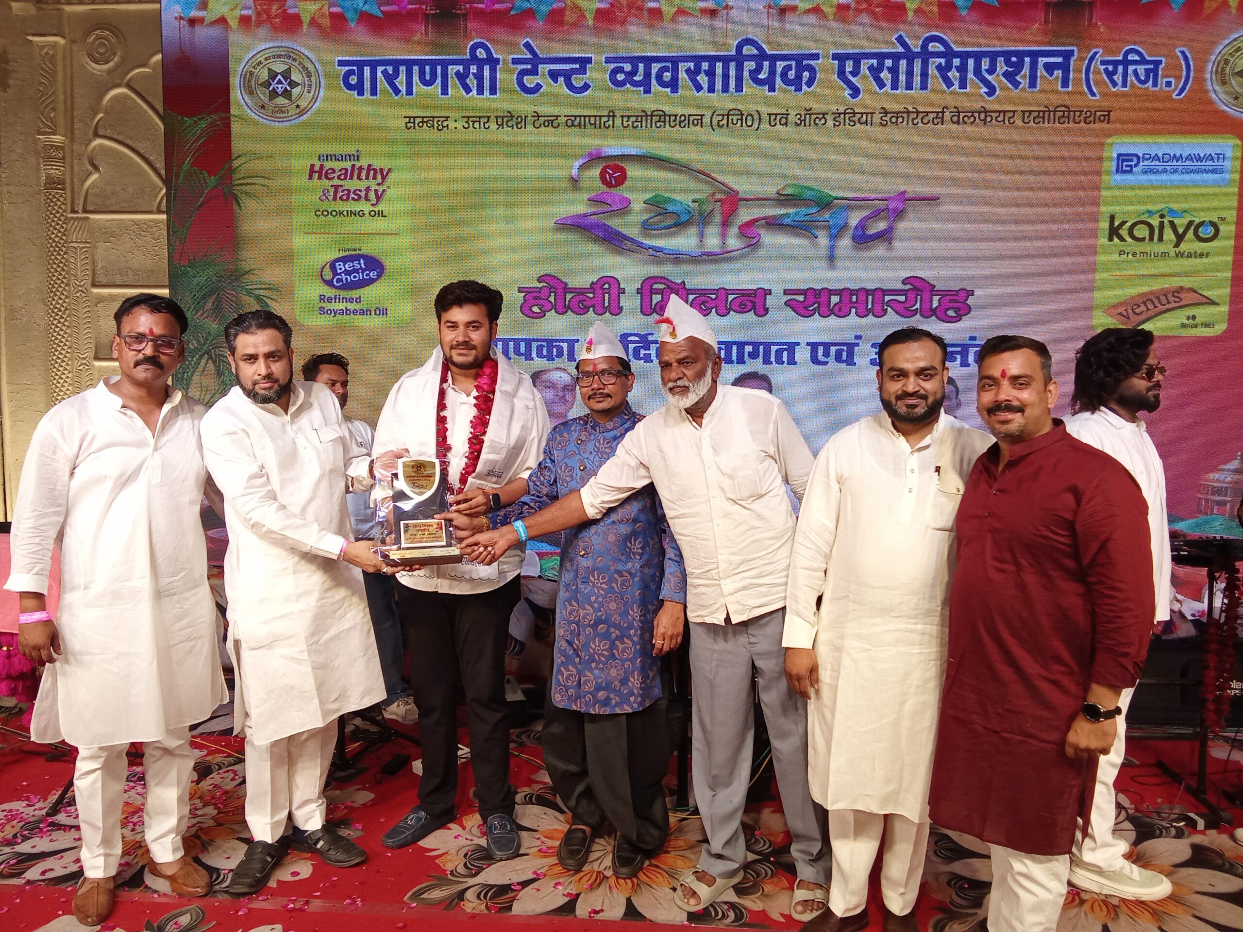 वाराणसी टेंट व्यवसायिक एसोसिएशन द्वारा कादंबनी बैंक्वेट एंड लॉन में पारिवारिक होली मिलन समारोह “रंगोत्सव” का आयोजन बड़े ही उत्साह और धूमधाम के साथ किया गया। कार्यक्रम में शामिल अतिथियों का स्वागत चंदन का टीका लगाकर, माल्यार्पण और अंगवस्त्रम देकर किया गया। पूरे समारोह के दौरान फूलों की होली और सांस्कृतिक प्रस्तुतियों ने माहौल को और भी खुशनुमा बना दिया। पटना से आए म्यूजिकल ग्रुप ने रंगारंग कार्यक्रमों की प्रस्तुति देकर लोगों को झूमने पर मजबूर कर दिया, वहीं कार्यक्रम में मौजूद लोगों ने होली के गीतों और संगीत का भरपूर आनंद लिया।
