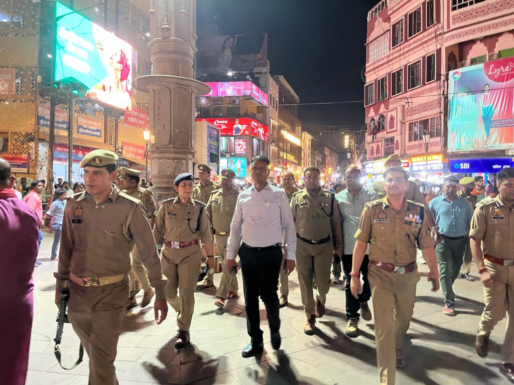 पीएम नरेंद्र मोदी के प्रस्तावित रोड शो लंका से गोदौलिया मार्ग पर सीपी मोहित अग्रवाल, एडिशनल सीपी एस चनप्पा और ज़िलाधिकारी एस राजलिंगम ने शुक्रवार की शाम पुलिस फ़ोर्स के साथ फूट पेट्रोलिंग करते हुए सुरक्षा व्यवस्था और रूट का मुआयना किया।