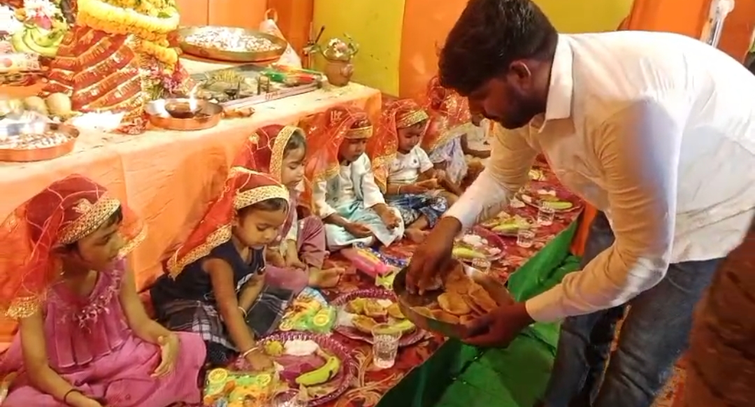 वाराणसी में दुर्गा पूजा नवमी पर कन्या पूजन का आयोजन