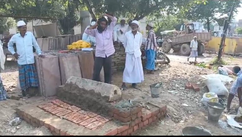 वाराणसी। जनपद के आदमपुर थानान्तर्गत कज्जाकपुरा स्थित बाबा श्री लाट भैरव मंदिर के पीछे रेलवे लाईन के पास मुस्लिम पक्ष द्वारा पक्के नये‌ कब्र का निर्माण कराया जा रहा है। नया कब्र बनते देख हिंदू समाज ने पुरजोर विरोध किया और मुस्लिम पक्ष से पक्के निर्माण को हटाने को कहा।