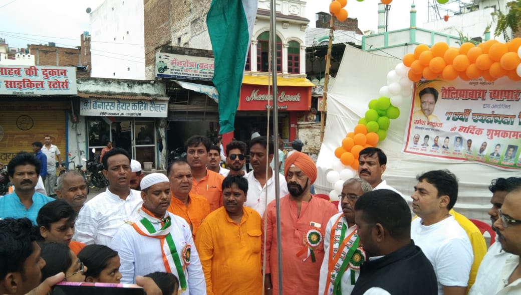 वाराणसी व्यापार मंडल के तत्वाधान में तेलियाबाग व्यापार समिति द्वारा मनाया गया सतंत्रता दिवस
