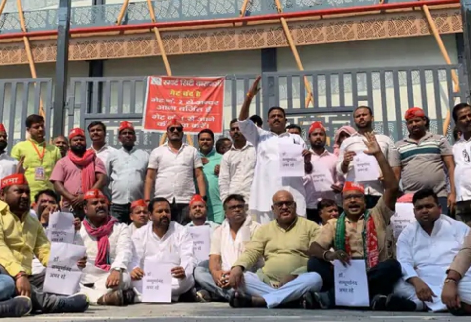 वाराणसी : सिगरा स्टेडियम का नाम बदलने पर सपा और कांग्रेस का प्रदर्शन