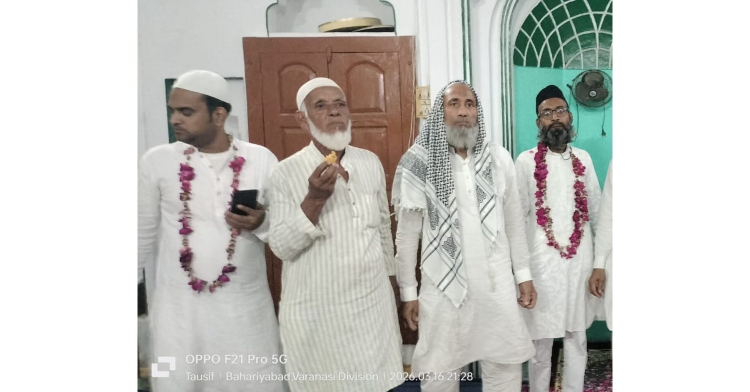 इस अवसर पर मस्जिद के मोतव्वल्ली अपशर इमाम ने हाफिज बेलाल को नजराना पेश किये। साथ साथ शमीमुल वरा, गुलाम साबिर, पूर्व ग्राम प्रधान डॉक्टर निसार अहमद, दानिश वरा, खुर्शीद मास्टर , वसीम उल हक, तारिक जमाल, अब्दुल्ला वरा, सदर इमाम, अमन बहरियावादी, सोहेल वरा,,निजाम खान, फिरोज खान, मुच्छन खान, असलम, , हसीन, मोहम्मद मुस्तफा के अलावा सभी नमाजी के हिसाब से साथ इफ्तार पार्टी में शामिल उत्तर मोहल्ला के नौजवानों में शाहिद अंसारी, शेर खांन, साहिल अंसारी, सद्दाम हुसैन, शहनवाज इद्रीसी, दिल शेर, सलीम अल्तमश ,निक्की, फरीद ,बाबू खान,शमशेर, सोहेल के अलावा अनेकों लोगों ने इफ्तार पार्टी में सहयोग दिए। विदाई समारोह के अंत सभी लोगों ने एक दूसरो के गले मिले और आपसी गिला शिकवा भूला कर मुबारकबाद दिए।