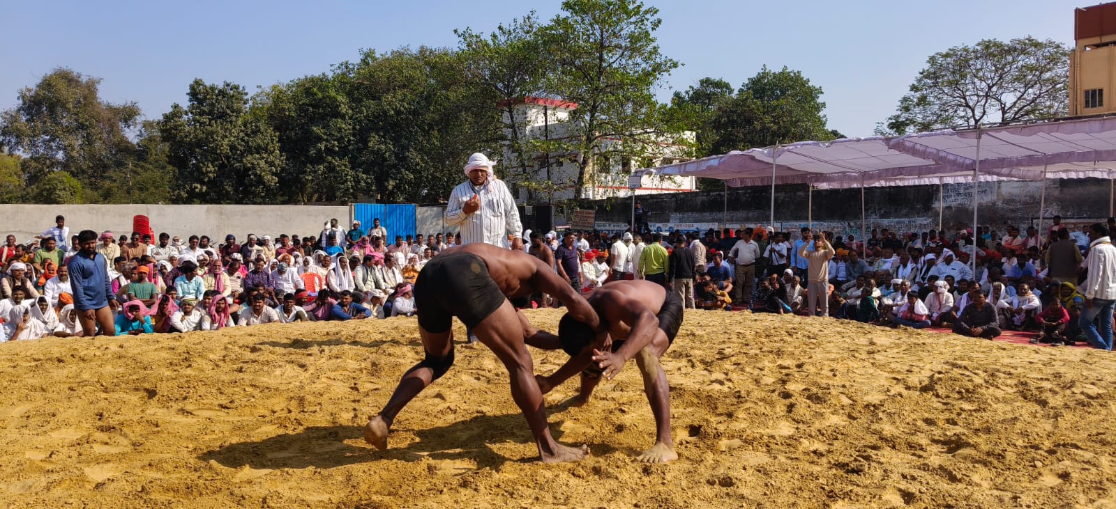 वाराणसी। सारनाथ के महाबोधि इंटर कॉलेज के प्रांगण में रविवार को चतुरी खलीफा व्यायाम शाला के तत्वावधान में एक भव्य कुश्ती दंगल का आयोजन किया गया। इस कार्यक्रम में भारत के विभिन्न प्रांतों सहित कई देशों से आए पहलवानों ने हिस्सा लिया और अपने अदम्य साहस व दमखम का प्रदर्शन किया।