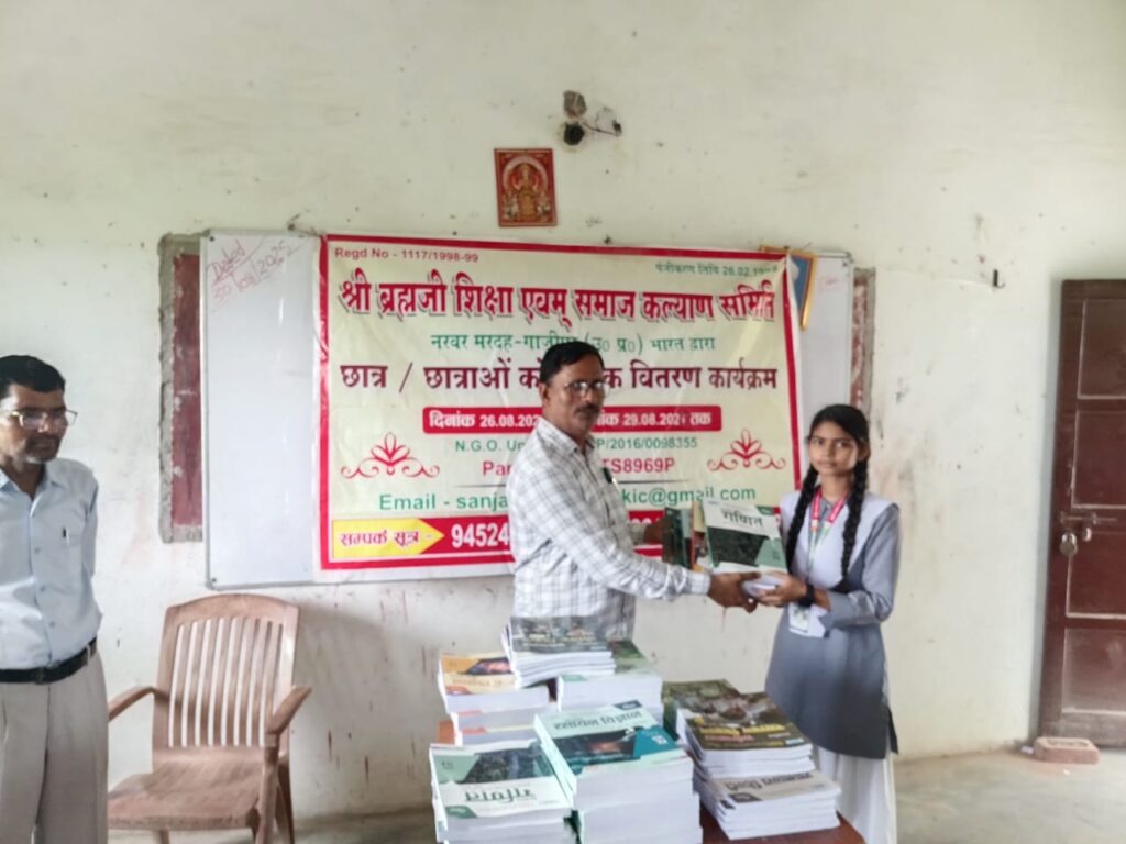 मरदह (गाजीपुर) जयदेश। कुंवर इंटर कॉलेज नरवर मरदह के प्रांगण में श्री ब्रह्मा जी शिक्षा एवं समाज कल्याण समिति नरवर के तत्वावधान में नि:शुल्क पुस्तक वितरण का कार्यक्रम संपन्न हुआ।
