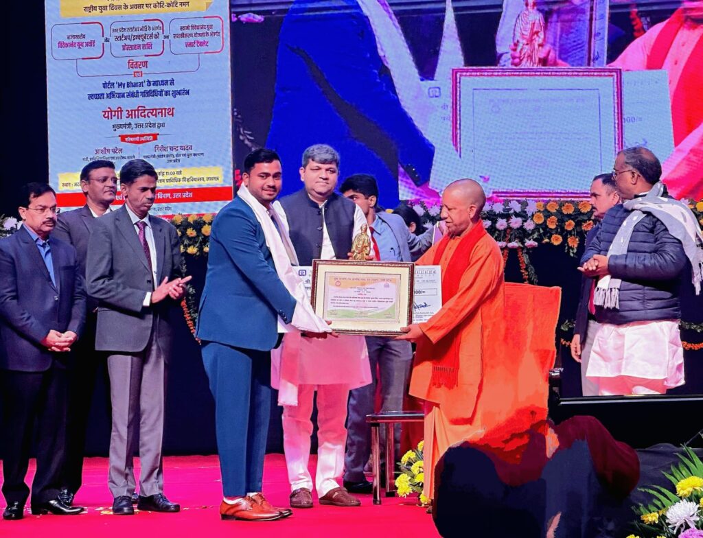 विवेकानंद यूथ अवार्ड से नवाजे गए सुल्तानपुर के अभिषेक, मुख्यमंत्री ने दिया 50 हजार का चेक