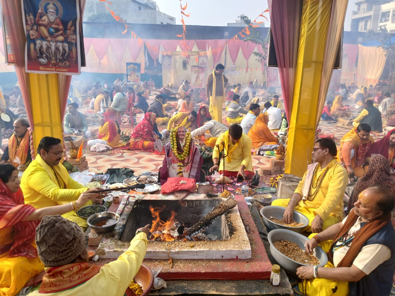 महायज्ञ के प्रथम दिवस वैदिक मंत्रोच्चार के बीच बेदी पूजन संपन्न हुआ, जिसमें काशी से पधारे आचार्य डॉ. अरविंद पाठक के निर्देशन में 21 विद्वान ब्राह्मण आचार्यों द्वारा शास्त्रोक्त विधि से अनुष्ठान कराया गया। प्रथम दिवस के यजमानों में राहुल सिंह एवं उनकी पत्नी प्रियंका सिंह, अतुल सराफ तथा गौरव सराफ शामिल रहे।